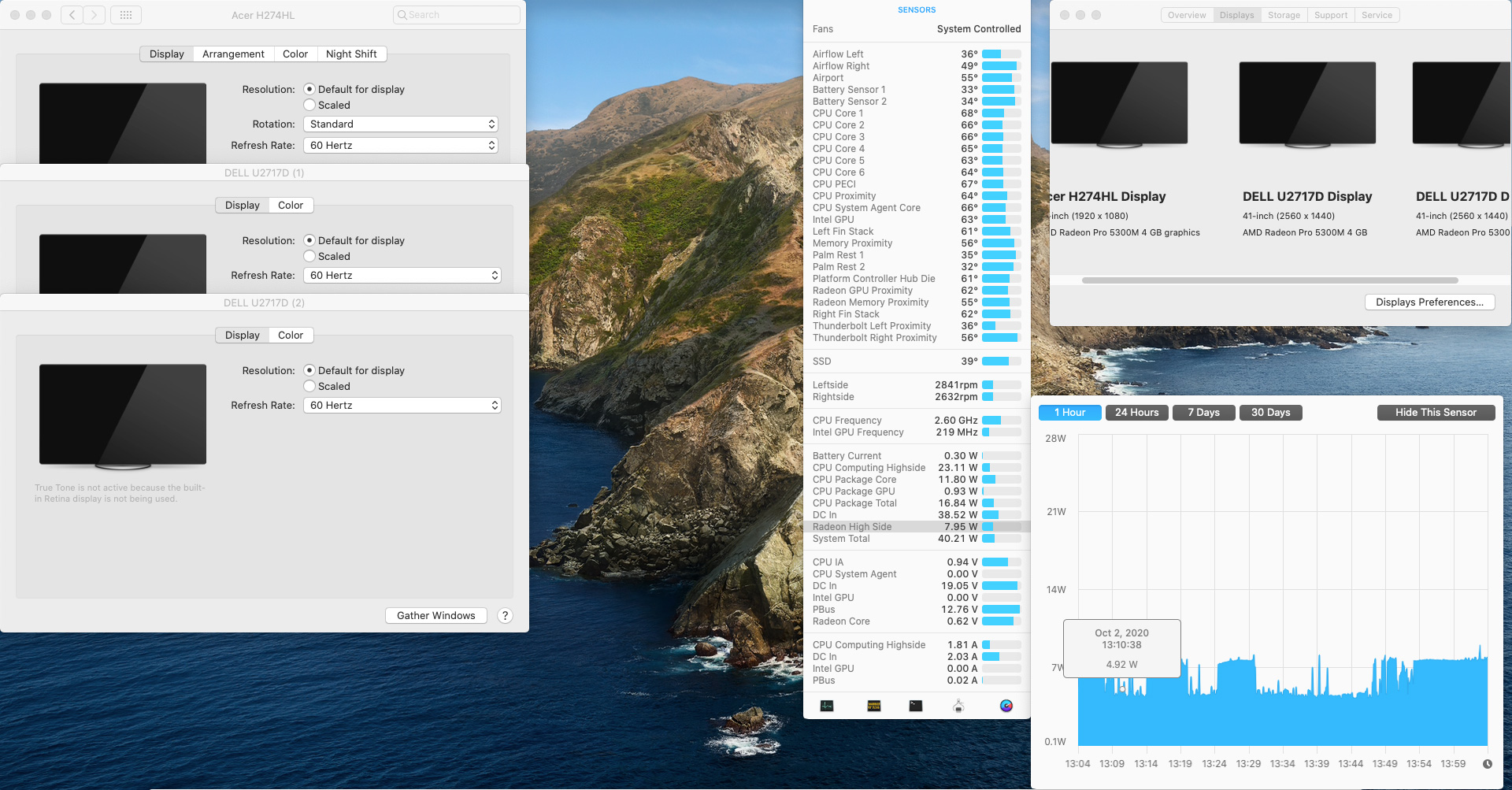Mac default 1920 x 1200 Mac outputs at a weird 59.88 Hertz, and Radeon draws 18W at idle. Switched resolution to 1920 x 1200 at 60Hz and radeon