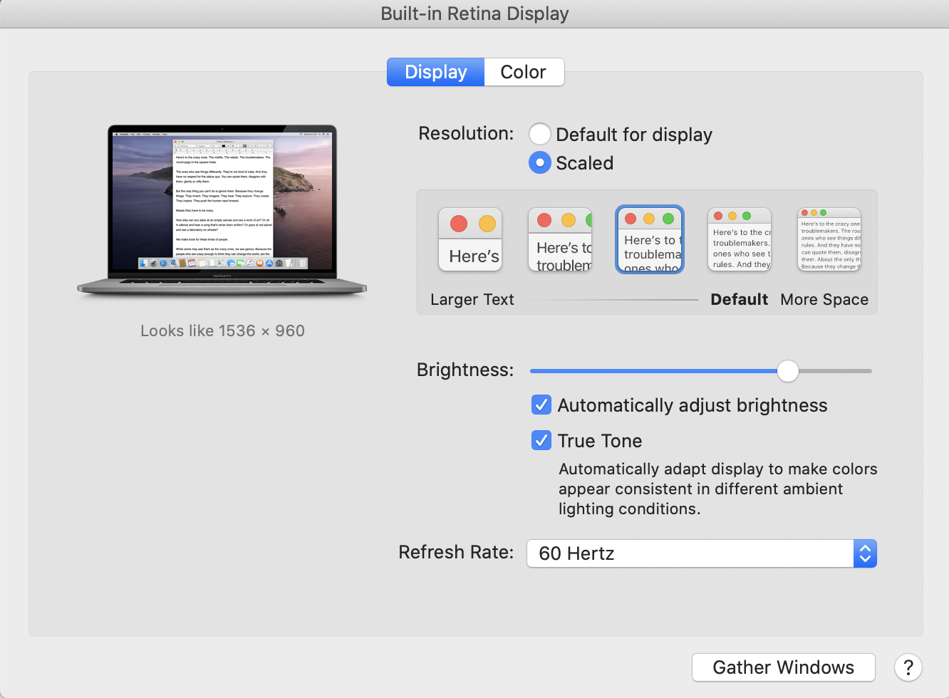 - Resolutions and refresh-rate used in MBP-2019 and on the LG screen