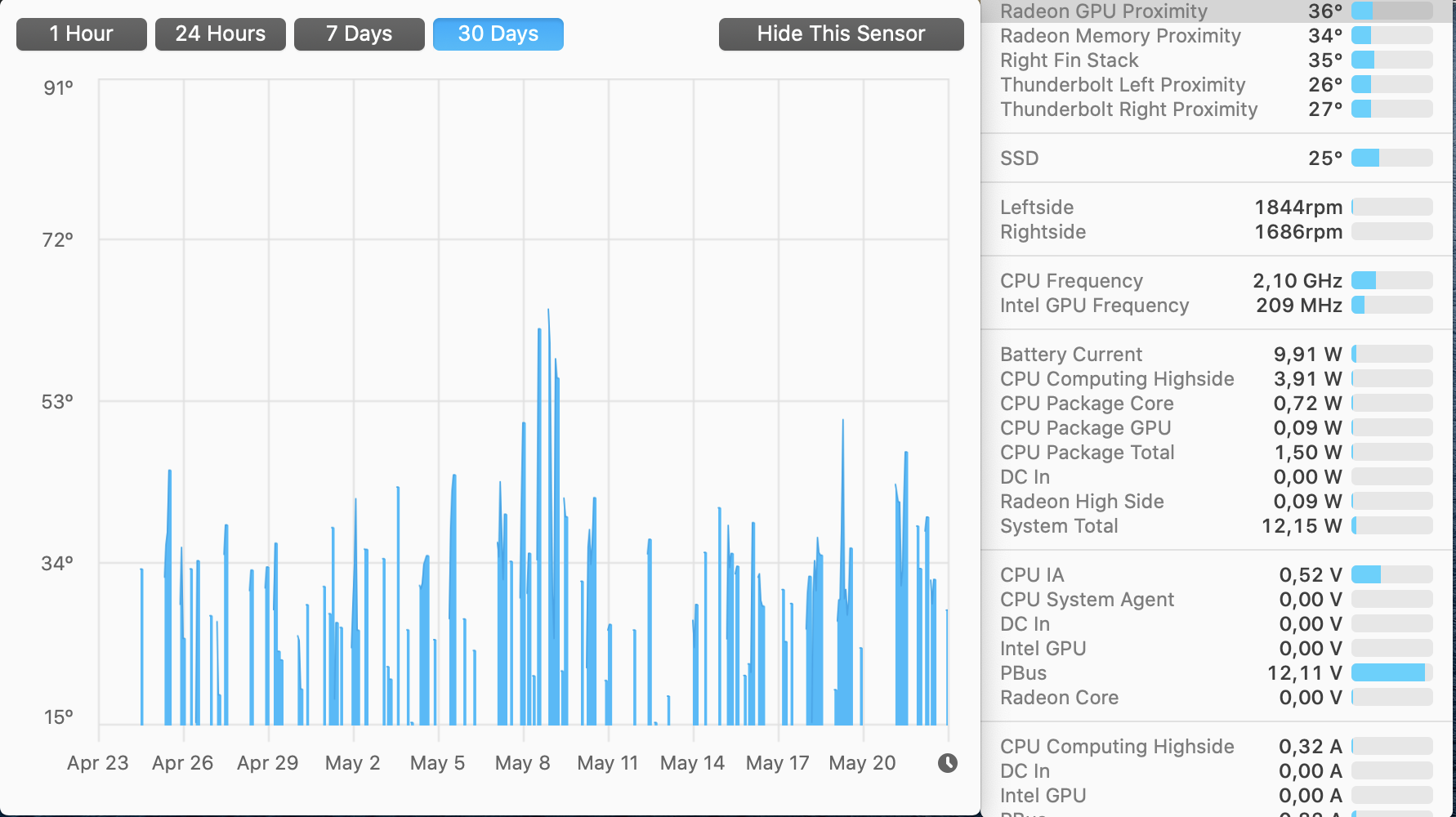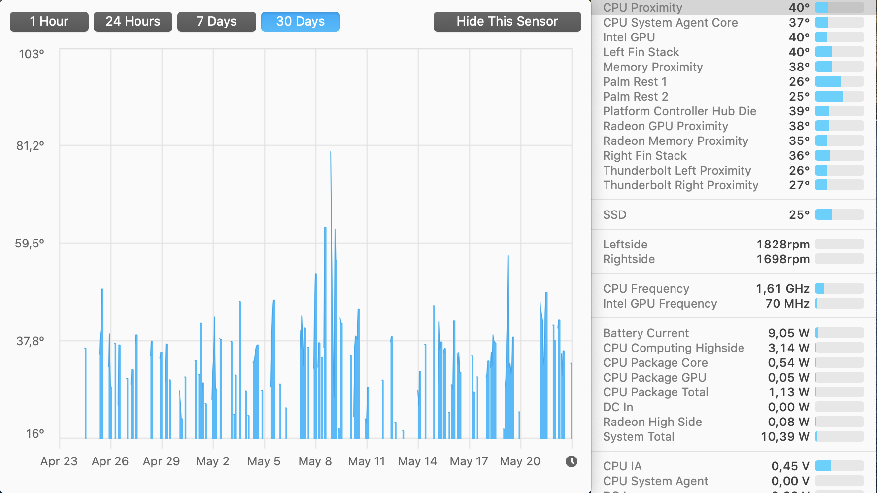 - I have one external monitor (a 27" 4k Dell U2720Q) plugged into the MBP 16" base i9 model via a USB-C cable