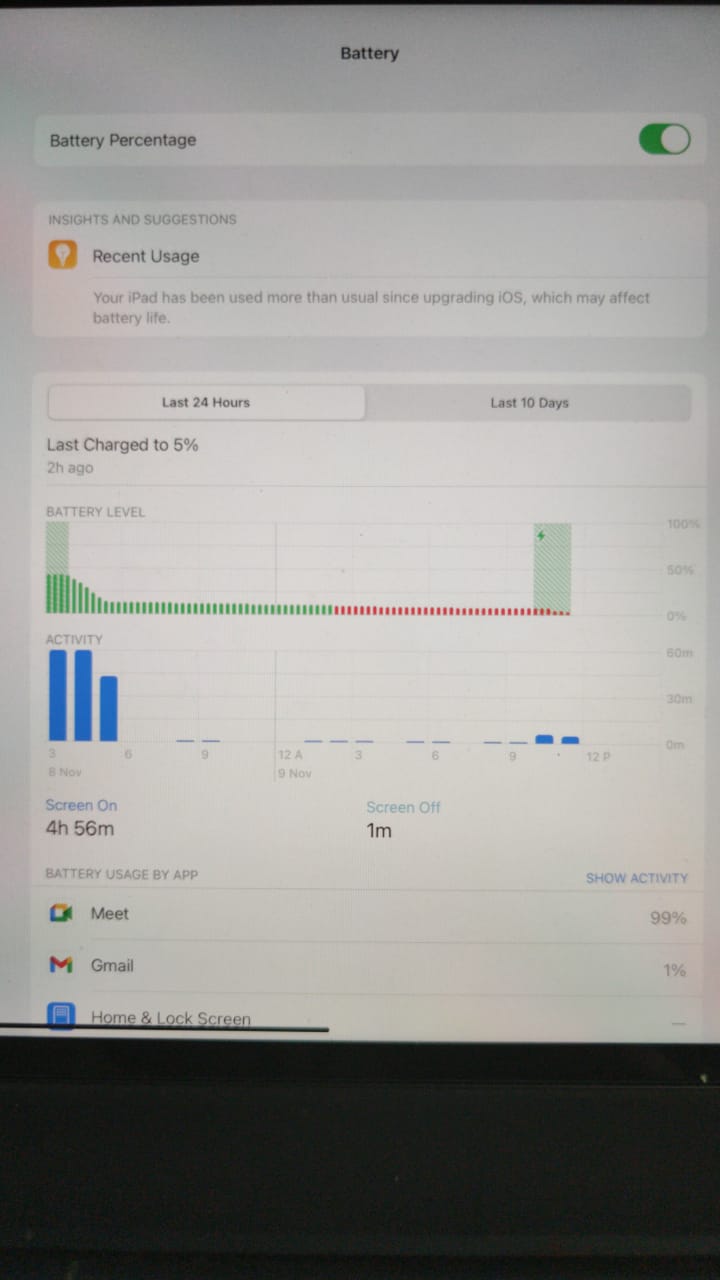 Today I kept it for charging (which was at 5%) for sometime and checked that it was still at 5%. I still kept it pluggedin and for almost half hour it was at 5%. I thought I should take it to the Apple premium reseller store here but after about total 40 minutes it went to 6% and slowly to 9%. So I kept it plugged in for another few hours after which it got charged 100%.