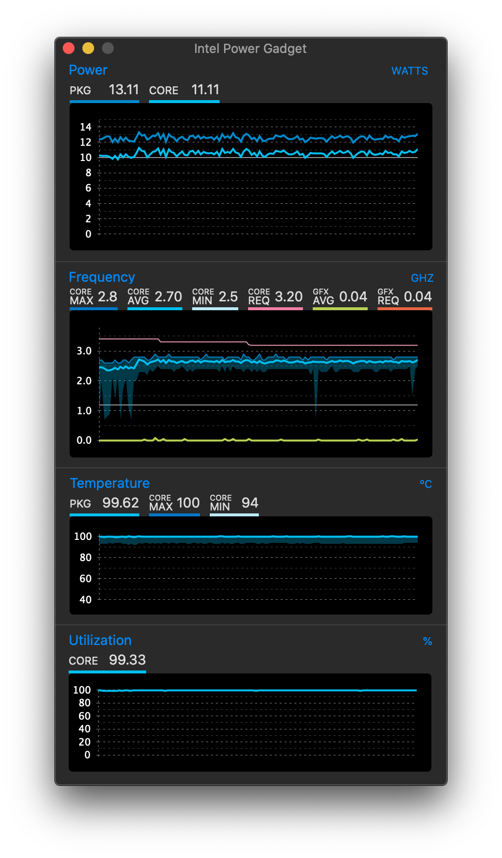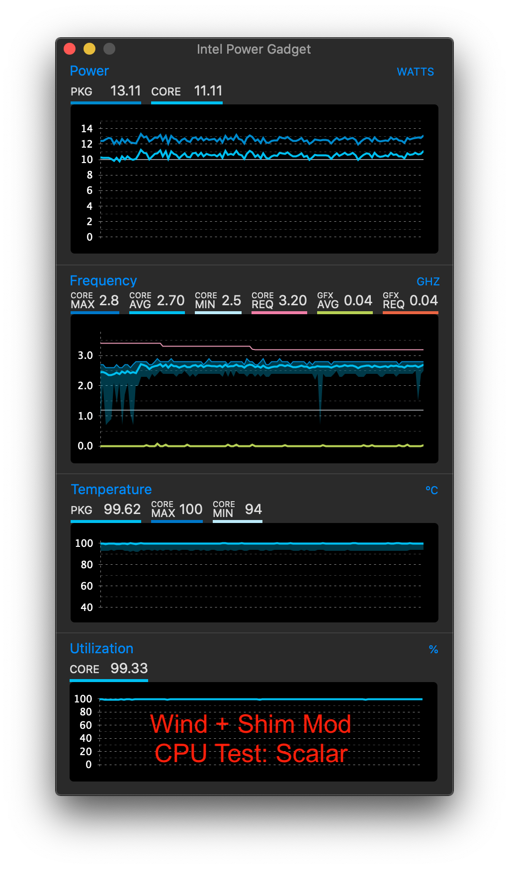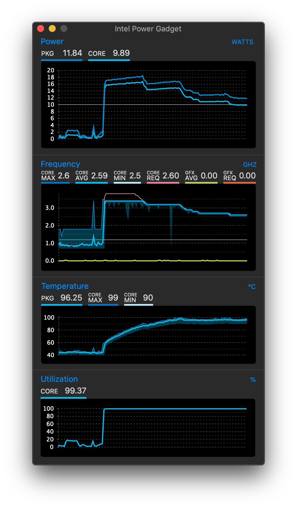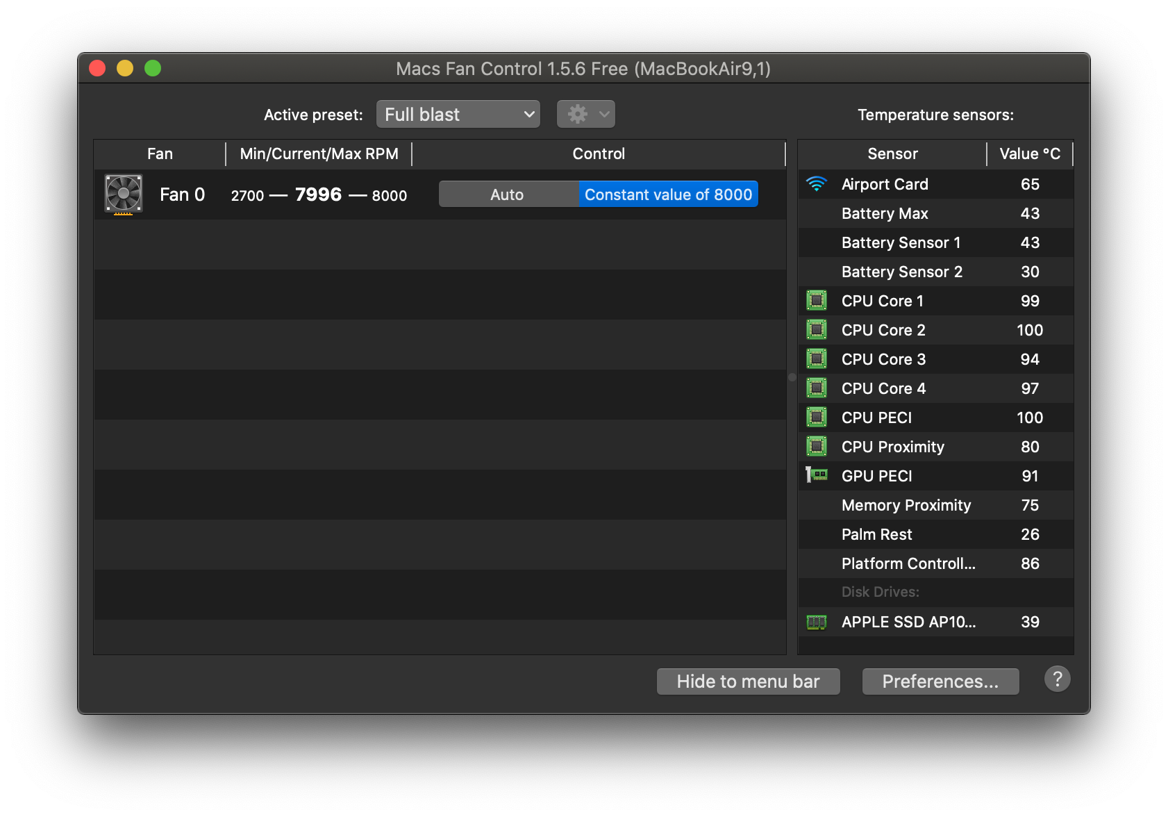 @Robotronic The consequence of limiting the airflow over the batteries didn't cross my mind, but below is a screenshot of the temps from Macs Fan Control just before I stopped the wind channel stress test. Do you see anything out of the ordinary?