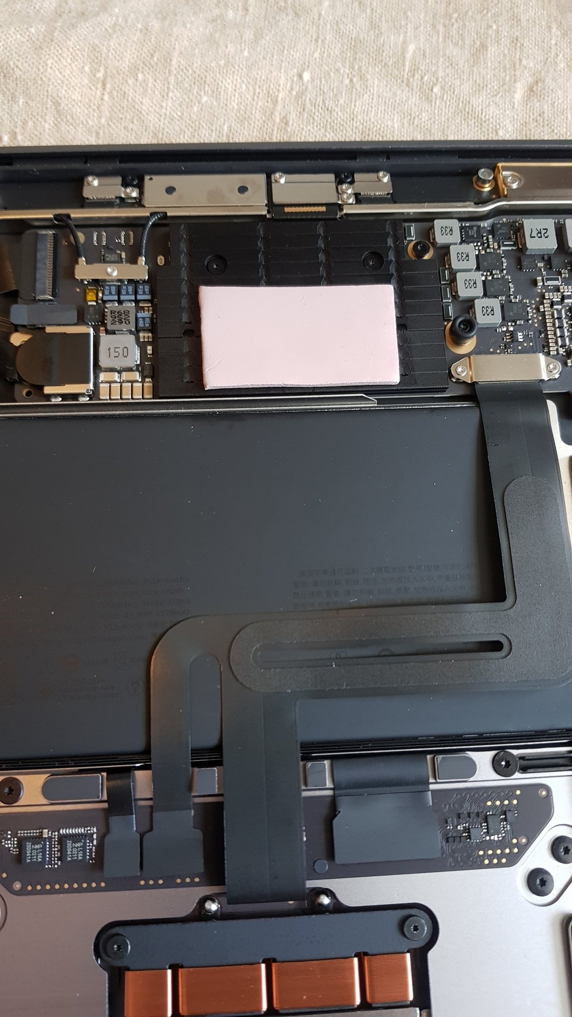 After installing the back cover, I noticed that the area where the CPU heatsink sticks out, that is, the cover is not tightly installed. So on a flat surface the laptop staggered. I think it's due to the thickness of the thermal pad and rounding closer to the edge, 2mm is too thick.