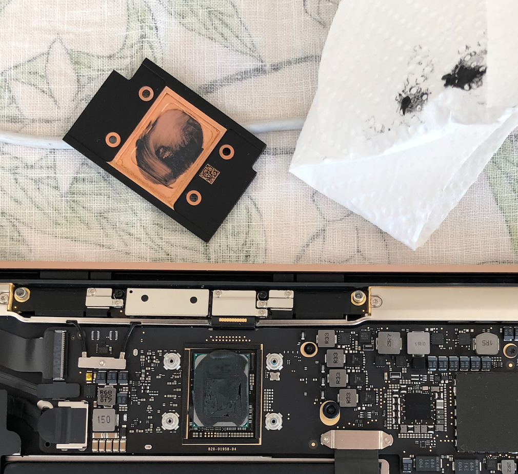 @srkirt, These are the risks of the mod, especially if you are constantly in and out of the device. I do hope your machine is not damaged beyond use. I'm not convinced there will be an espionage from Apple with our findings, however if there is good luck to them and I hope this feeds back into R&D so others can benefit from our collective work in the future.I just broke the thread of a screw from so much tightening and removal... I just cleaned it and removed the rubber from the tunnel effect and you can see the temperature rise... 5º more !!! I'm also thinking one thing ... here comes people from Apple for sure ... and they are up to date with everything ... since the update also costs me to lower the rest, with fresh pasta and all clean ... I don't understand it, the top part works fine as before but in rest with nothing I can't get below 36/37... Will there be a spy looking at our inventions? By the way I found out one thing while trying to fix the thread of the screw chassis that doesn't tighten. The air inlets and outlets are square and the hole is wider than those four inlets... By removing or sawing off that piece of plastic the laptop would have 2cm more air inlet and air outlet.