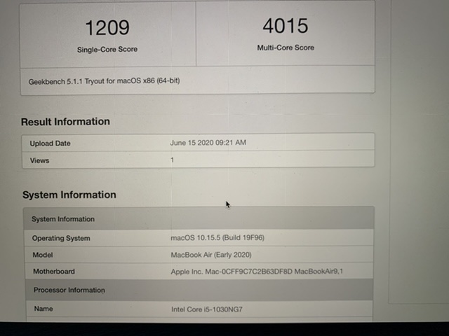 One thing that bothered me is that I couldn't get my Geekbench multi-core score above 4000, while even the i5 models have recently managed to climb over it. I've run all the previous tests on macOS 10.15.4, so I didn't update to the 10.15.5 for the resting to make sure it didn't affect the outcome. But after all the tests were done, I've updated the macOS and ran Geekbench 3 again a few times. Below is the average of 4 runs.
