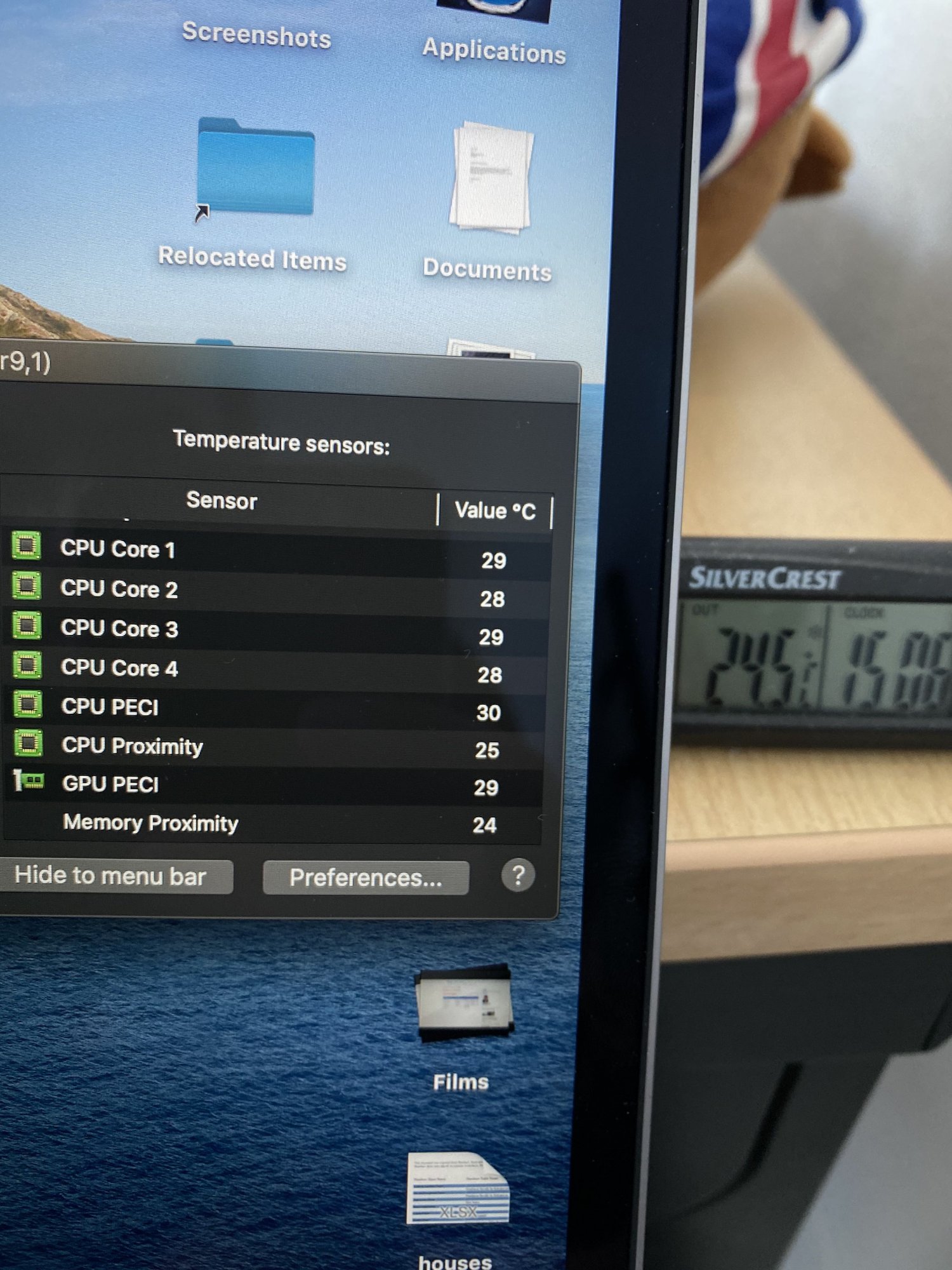 I am using TG pro to monitor temp, and control fans. At rest, with just this firefox window open, temp is 38C, and fan is 4K, almost audible.