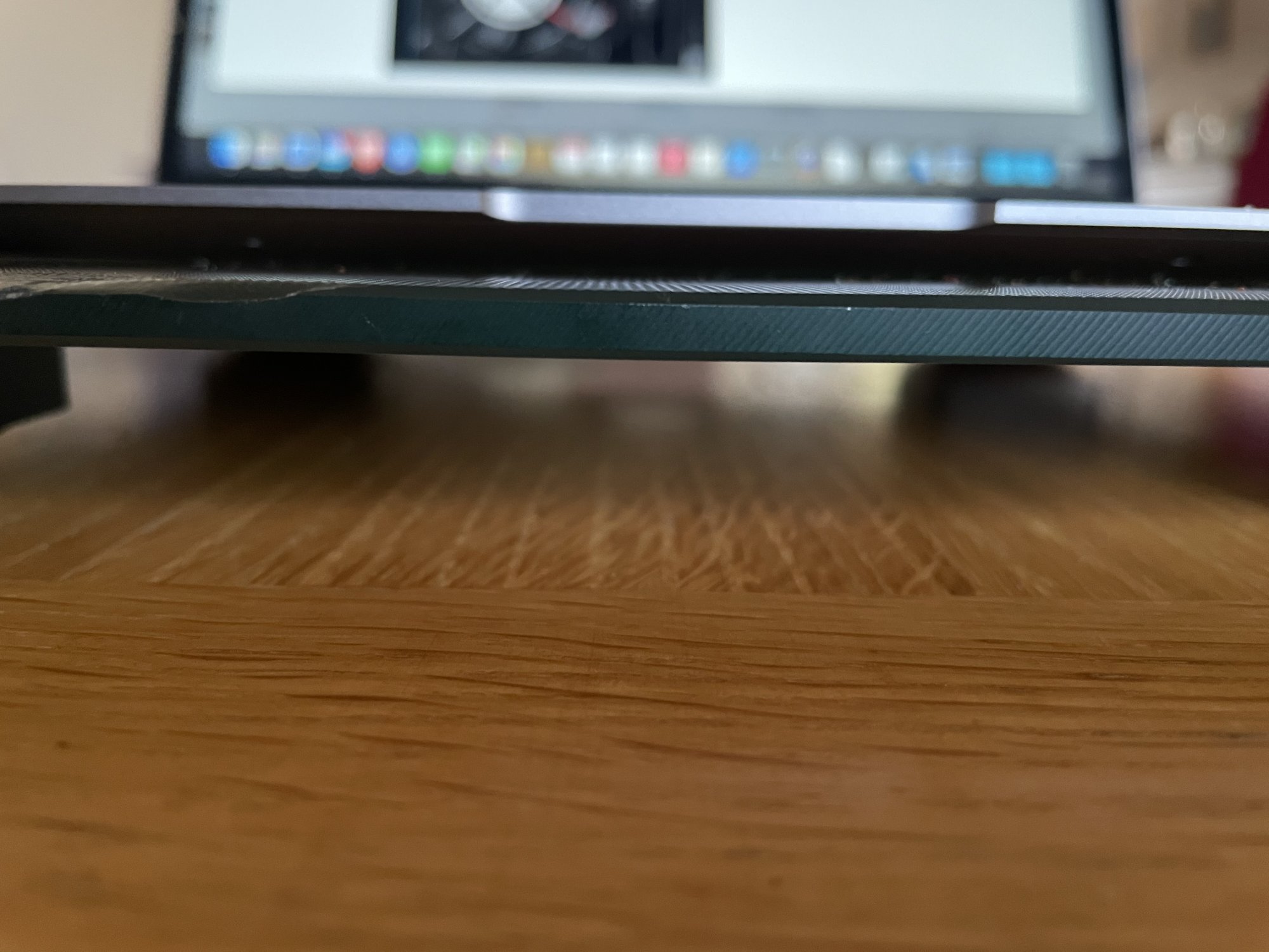 But I just noticed that my MBA is very wobbly because the bottom left foot of the base is not touching the table (almost two credit cards fit under it; tested it on several plain surfaces). I can’t tell if it was like this before the mod (just got it a couple of weeks ago and haven’t used it a lot since then).