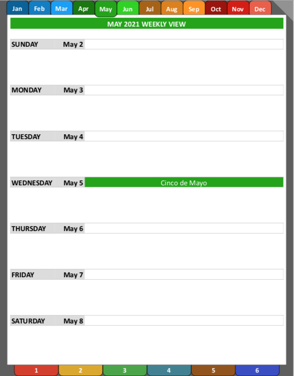- Week-in-Overview pages. For those who want to keep a weekly view.