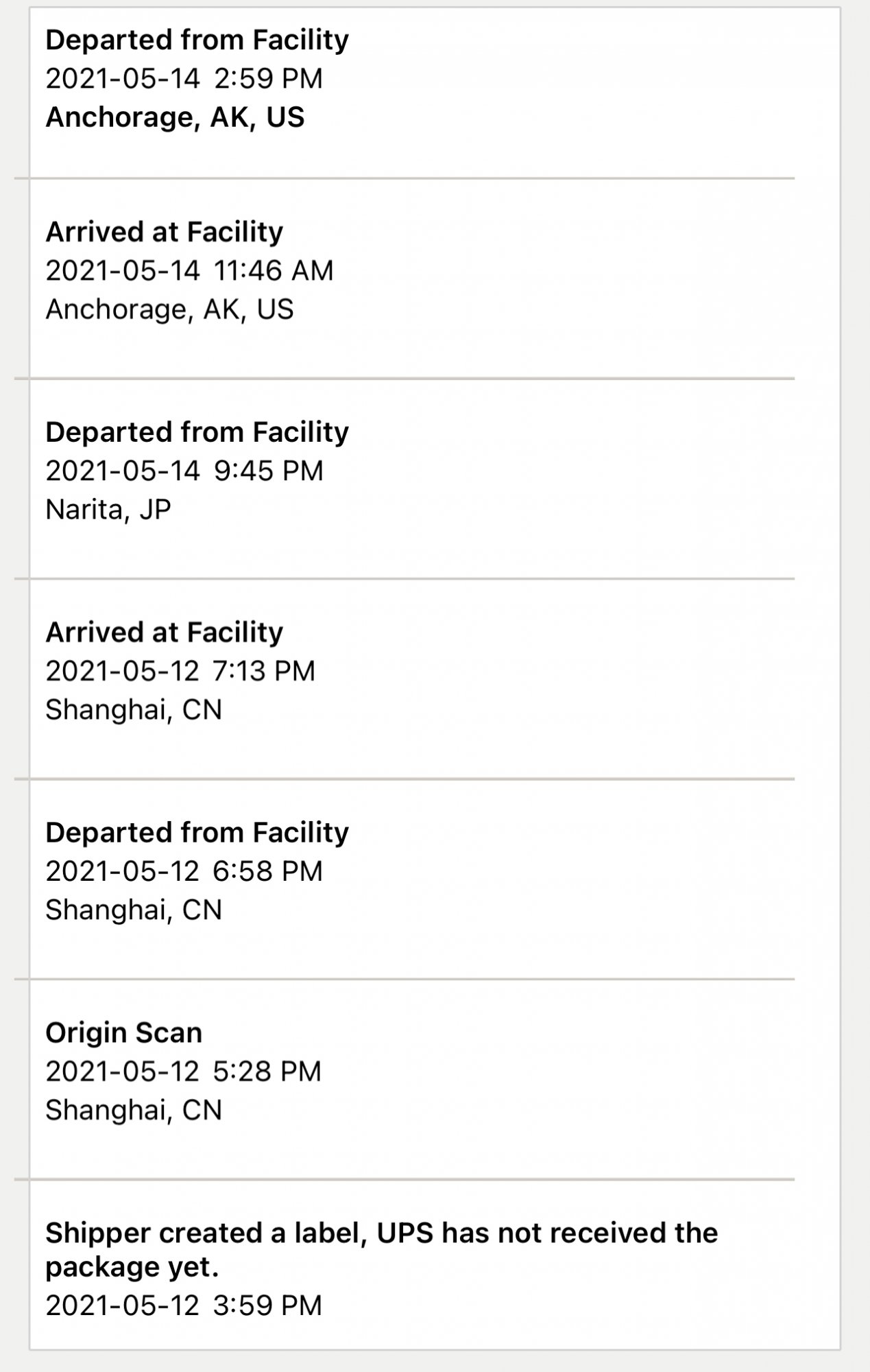 That's BIZARRE!OK - mine must be more interested in frequent flier miles --- Note: I live 60 miles from Oakland CA... here is what FedEx says (delivery on May 21)