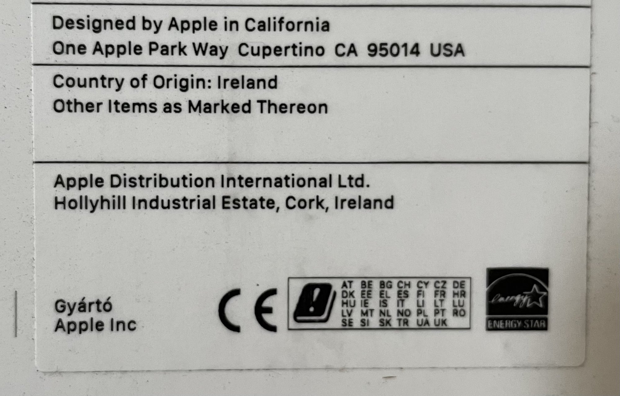 Interesting. So Apple has gone from mainly manufacturing iMacs in China to China, Thailand and Ireland?Is it possible that it was made in Ireland? Cause I cannot find any China or Thailand origin, the brown outer cardboard packing and the iMac white box say the same, Country of Origin: Ireland