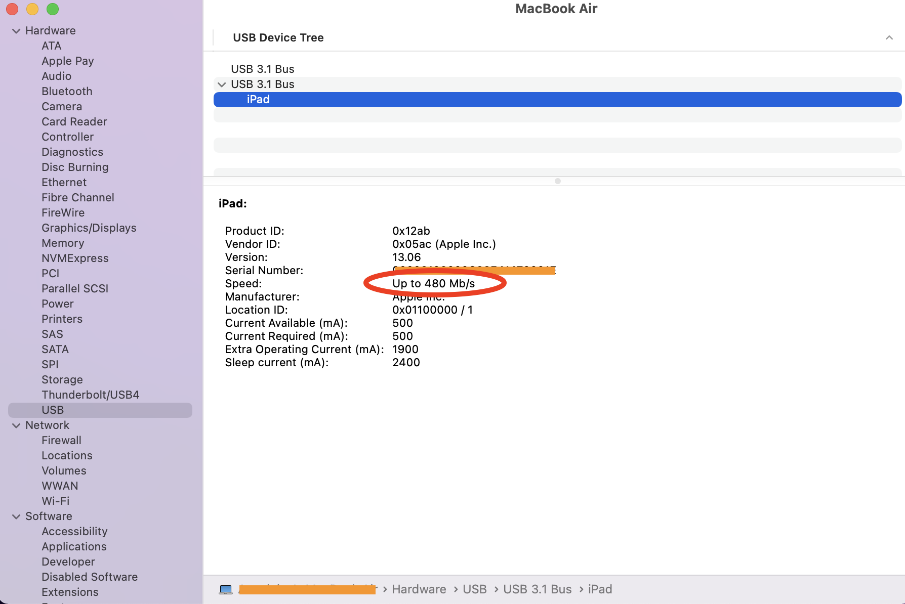 The issue is that connecting via Thunderbolt or USB-C cable, the mini never reports speeds faster than 480 MB/s. I’ve tried multiple cables of both types and every port on the mini. I have a Caldigit TB dock connected to the mini and it reports 40 GB/s speed. I connected a USB 3 SSD to the iPad and while I couldn’t see what the speed was, it copied hundreds of photos in a few seconds. It appears this is just an iPad to mini issue.