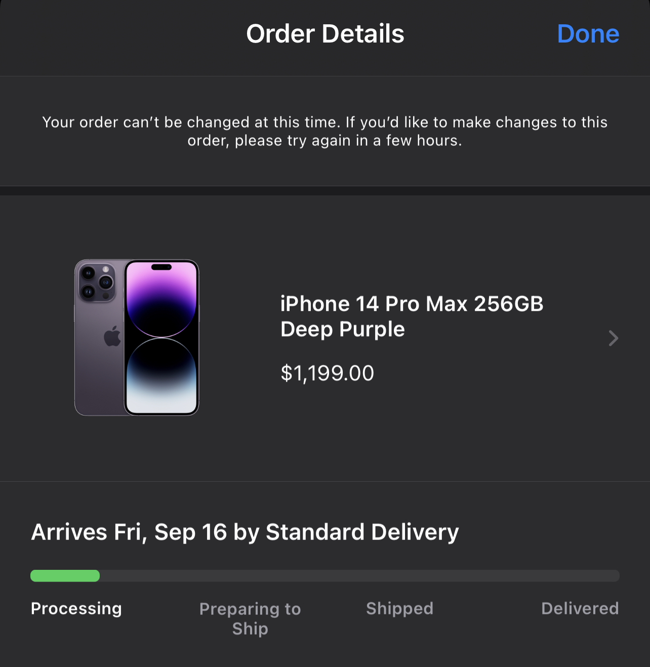 Yes same here, Team 14ProMax Purple 256 GB arrive Fri 9/16 , YayDone! Launch Day! View attachment 2054562