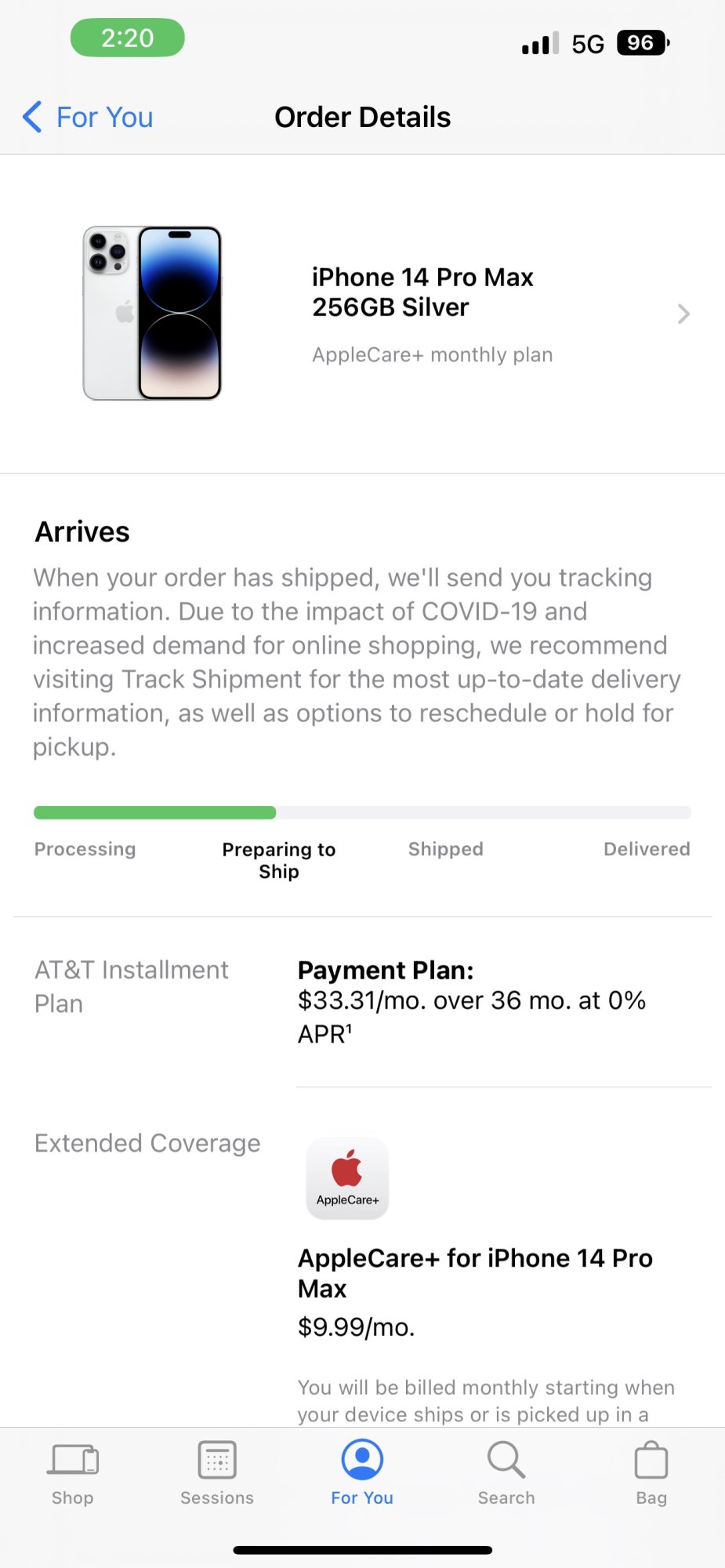 All the same for me. I did eventually call Apple, and they said the same. The order is already approved through Citizens One and the transaction is pending on my card. While she could change the billing information, she recommended leaving it alone because it could delay my order. She said an email would come if there was an issue with the billing and I would have an opportunity to correct before the order was canceled. So I think we’re both sitting pretty.I was just coming to update you. I got through to apple, and the rep said she wasn't able to make a change, but did see that the transaction was approved. She even went to the team that handles the iUP and they said that because my billing information was correct with citizens one and it had already been approved, I would be all set. When you say you went into the app to change your billing information, do you mean your default billing information for apple? You weren't able to update anything on the order, right?