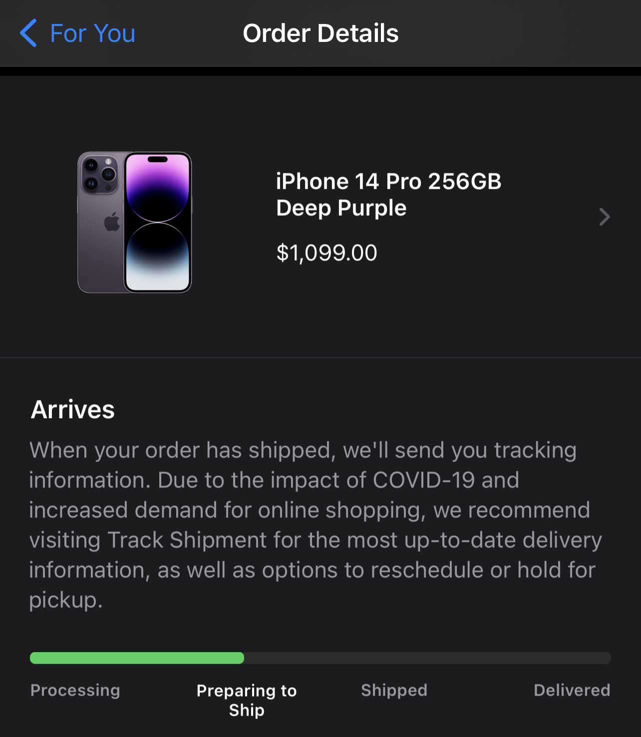 It should have. You have to click into the top bar and it will tell you if you want a pickup option or delivery. It took me a few seconds to figure it out when I was placing an order for the 2nd iPhone.