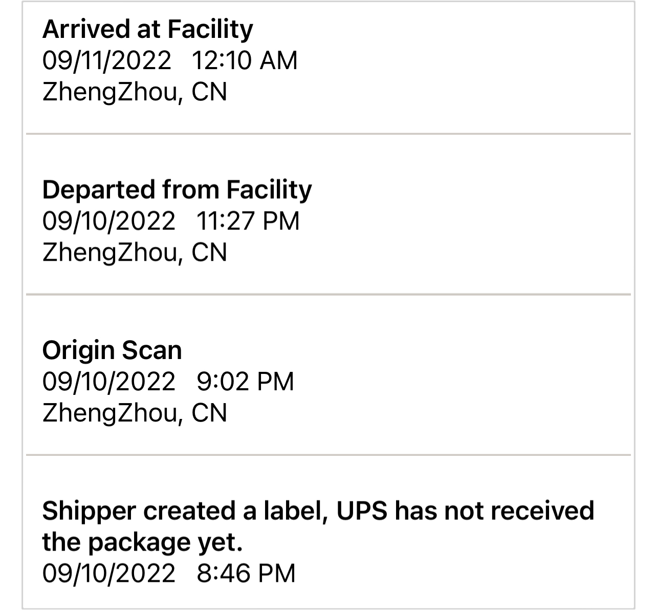 If you are still discovering UPS scans, please report. It’s getting late in China. I wouldn’t be surprised if they stop assigning the tracking numbers for the day. Until the next morning.