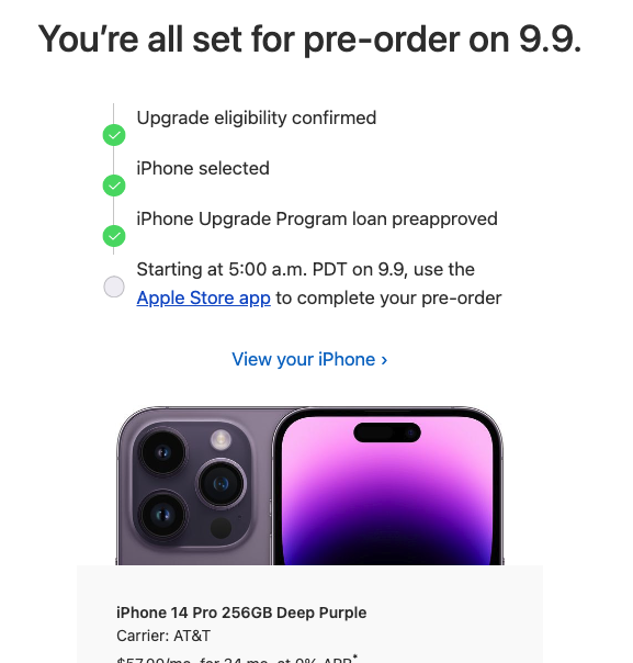 Awesome, I didn’t know that you could do the iUP on a prepaid planVery excited! Unfortunately, need to go to the AT&T store to setup eSIM (prepaid plan and coming from XR on physical SIM), but just a one time annoyance.