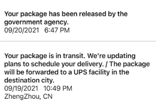"Your package has been released by the government agency). Again, you will not see that. You will simply see the