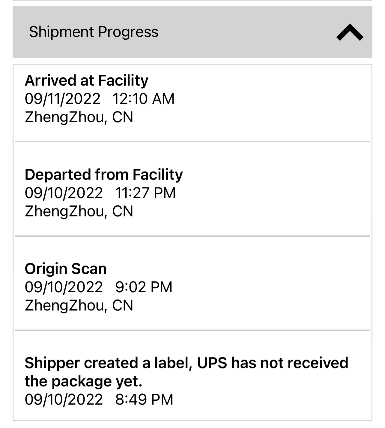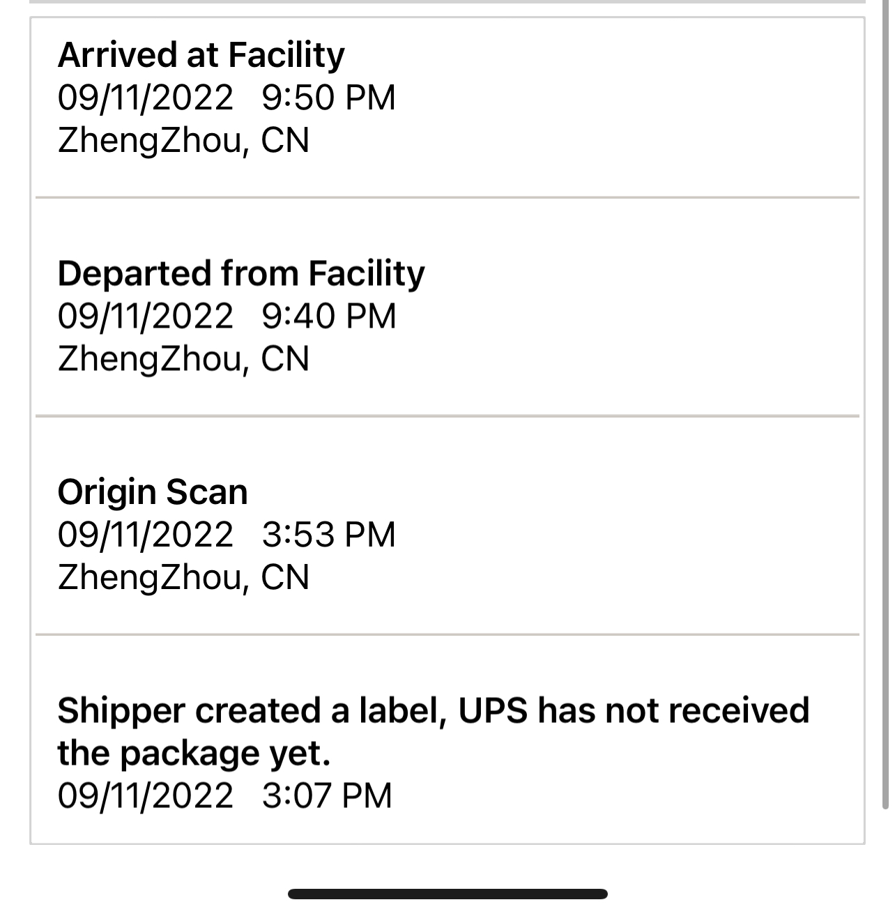 I was just going to ask if anyone in wave 1 had left the terminal yet at ZZ. UPS Choice seems glitchy right now (mysterious message about a system necessary to fulfill request unavailable), so I'm not 100% sure we're getting up to date status reports sometimes. My status still same as above.View attachment 2057828Am I part of wave 1? Have yet to get departure scan from China.