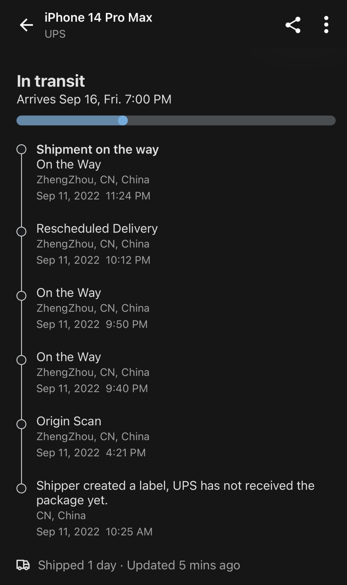 Mine is a bit different (in first wave).More updates on tracking on AfterShip app that I don’t see on the UPS app and web.