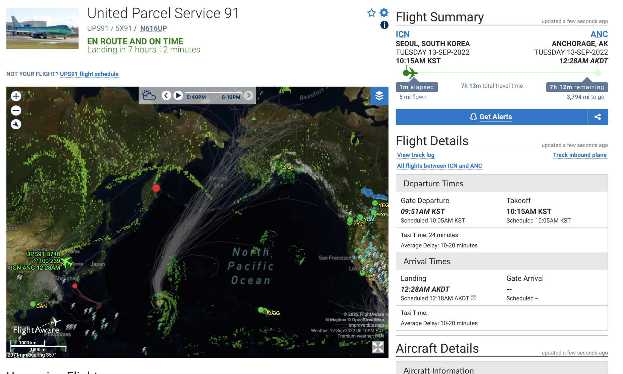 Track United Parcel Service (5X) #91 flight from Shenzhen Bao'an Int'l to Anchorage Intlflightaware.com