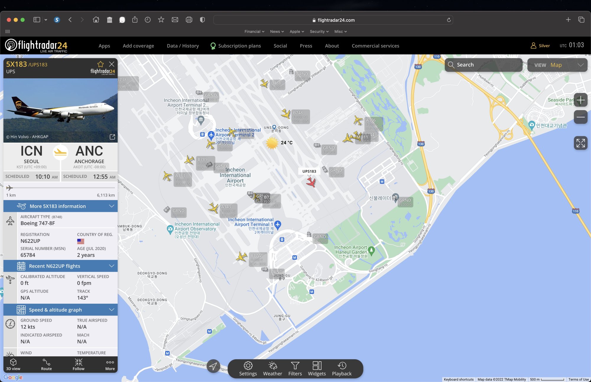 I only bought one iPhone, now I wish I'd bought two so I could track two aircraft. Not sure I can stay awake until ANC on this either.