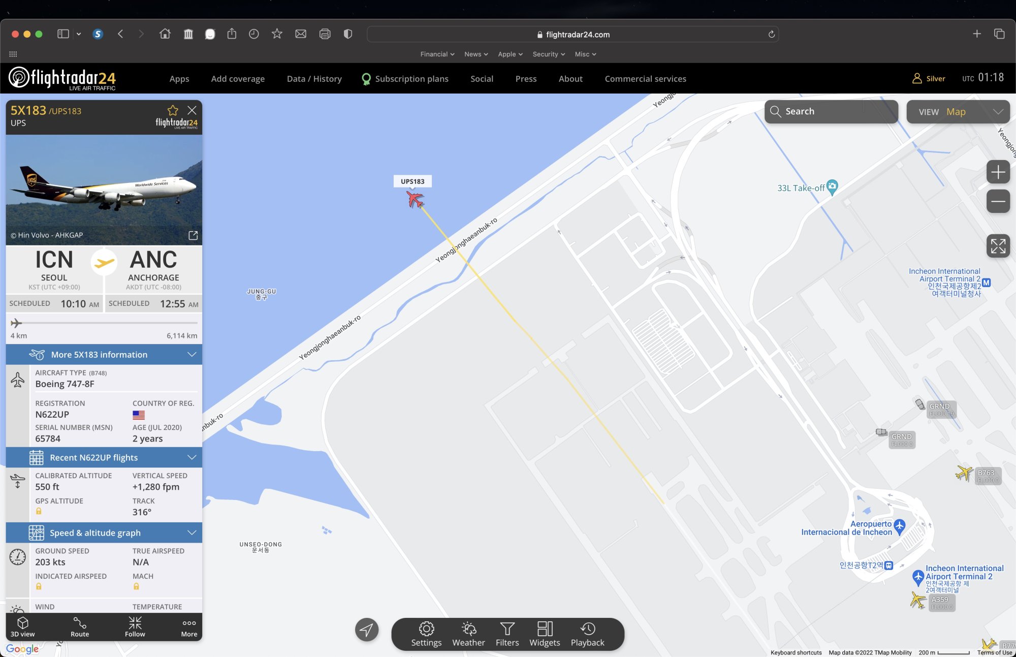 Once I latched on at Incheon, never looked back.I wonder we never seemed to be able to find what plane took us to Korea with UPS 91 taking us from there to Louisville. I wonder if there is a short hop like UPS 175 from China where the phones really were For UPS 91 and now we saw the same with 175 to the UPS 183 leaving shortly?