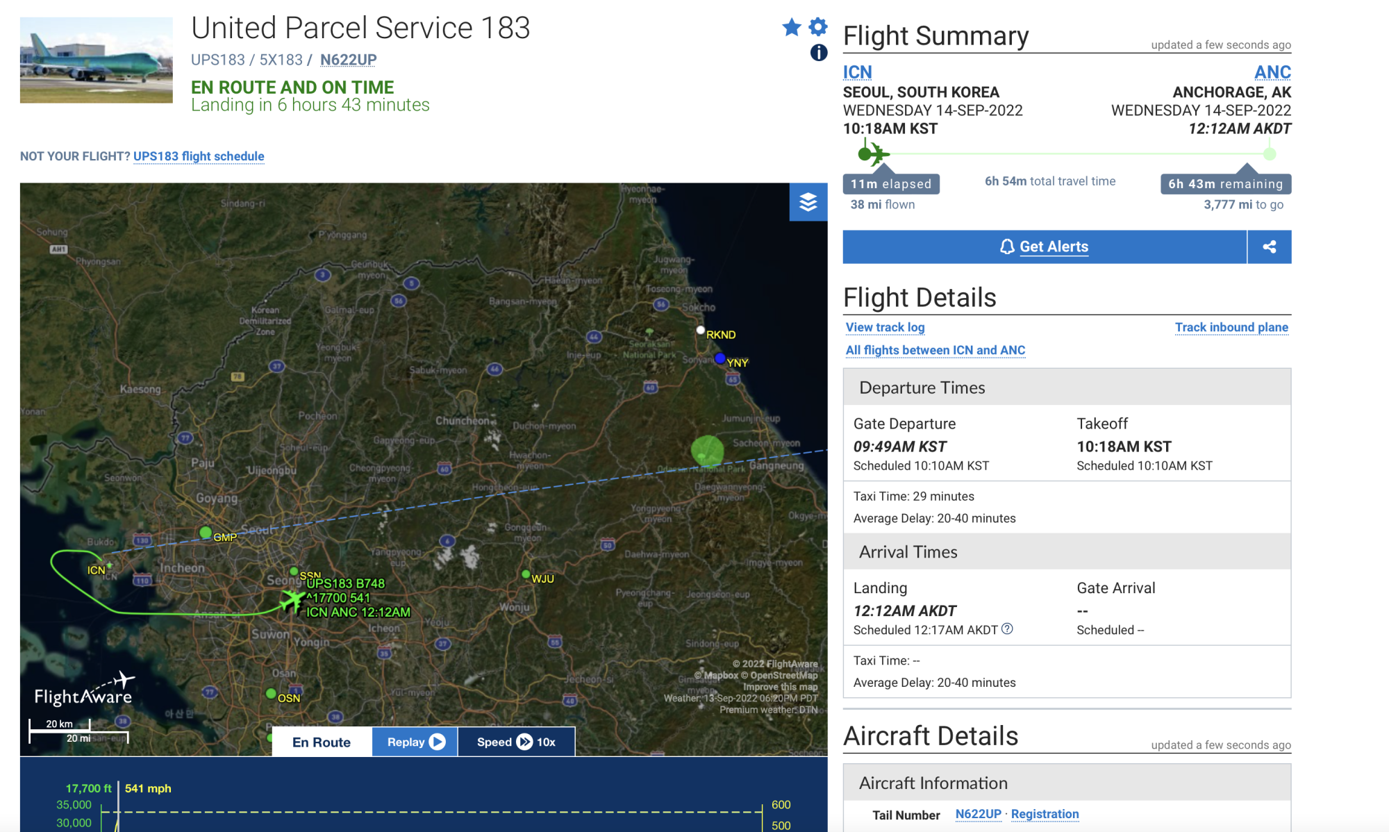 5X183 (UPS183) United Parcel Service Flight Tracking and History 14-Sep-2022 (ICN / RKSI-PANC) - FlightAware