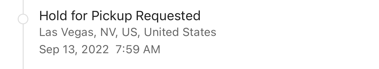 Could be not sure. That's why I always advise people do it when it goes from Anchorage, Alaska to Louisville, Kentucky. Couple of reasons why.Mine doesn’t. Wonder if it’s because I requested pickup days ago, before they entered the US.