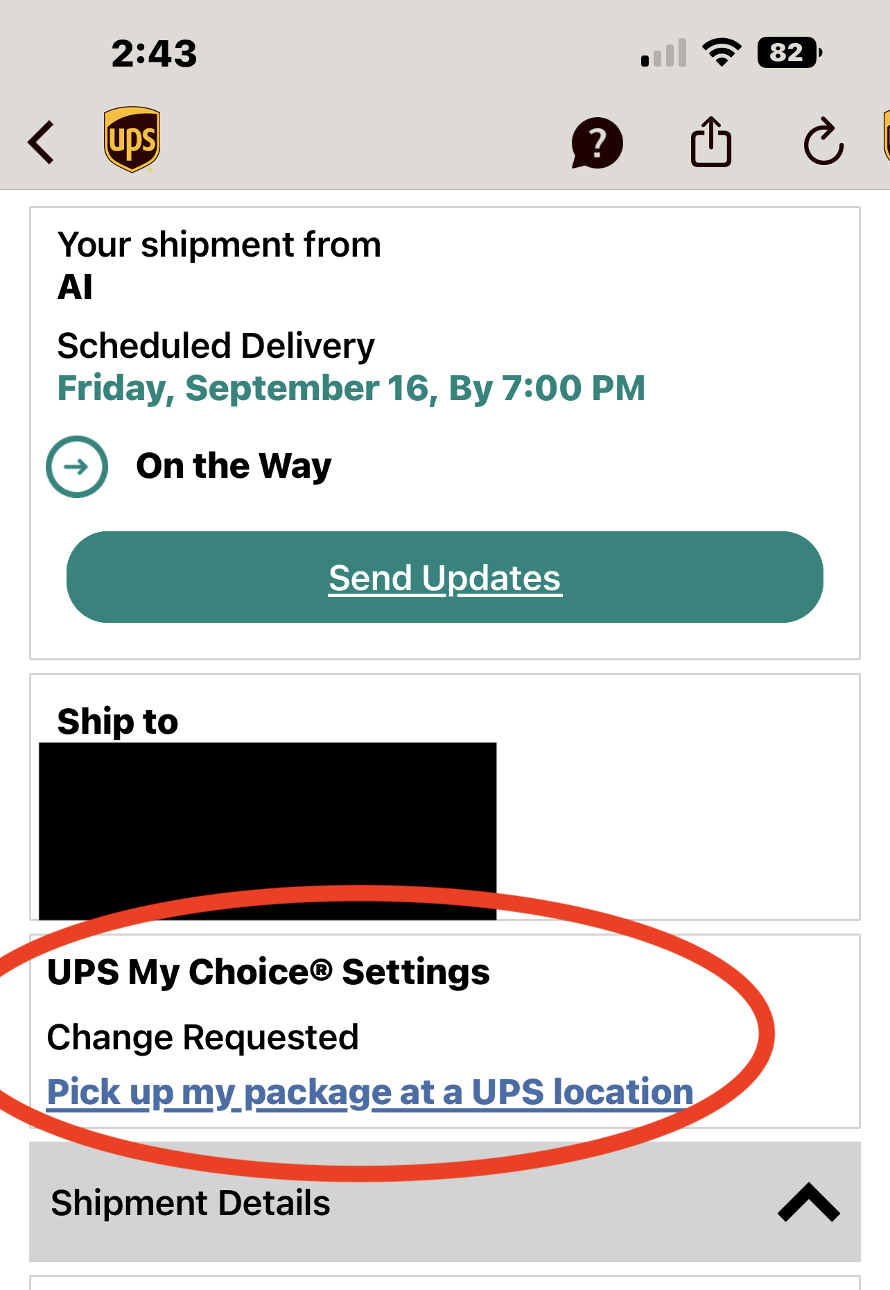 I called on Tuesday and had my 14PM held at the CC here for pick-up on Friday, but the only thing the app has shown ever since is just that a change has been requested. Just below that it looks like I could request the same change using the app, but I'm afraid to screw up anything that should already be in the system. It's a bit vague and confusing.If I changed my pickup to a UPS CC, would I see anything additional in the tracking info? The last scan i have is leaving Anchorage, but I expected a line item for the change request.
