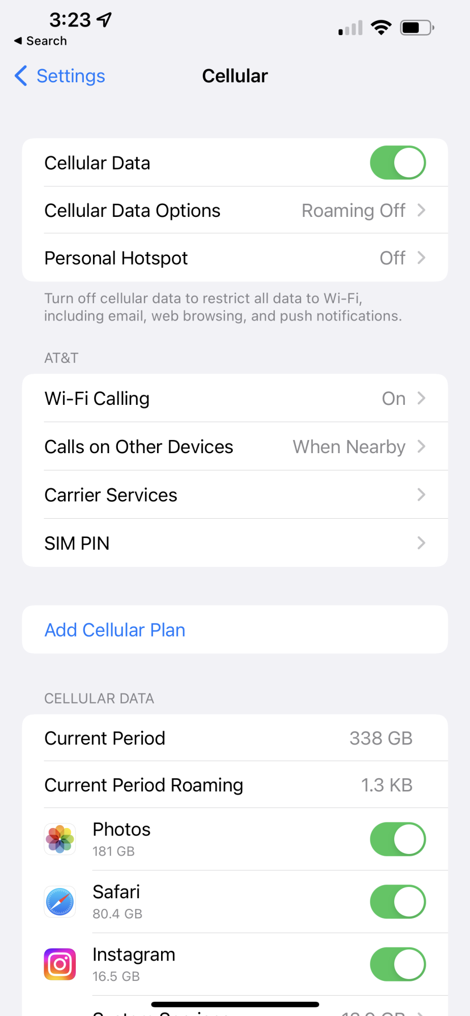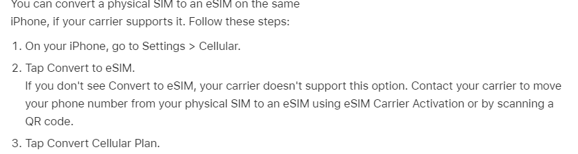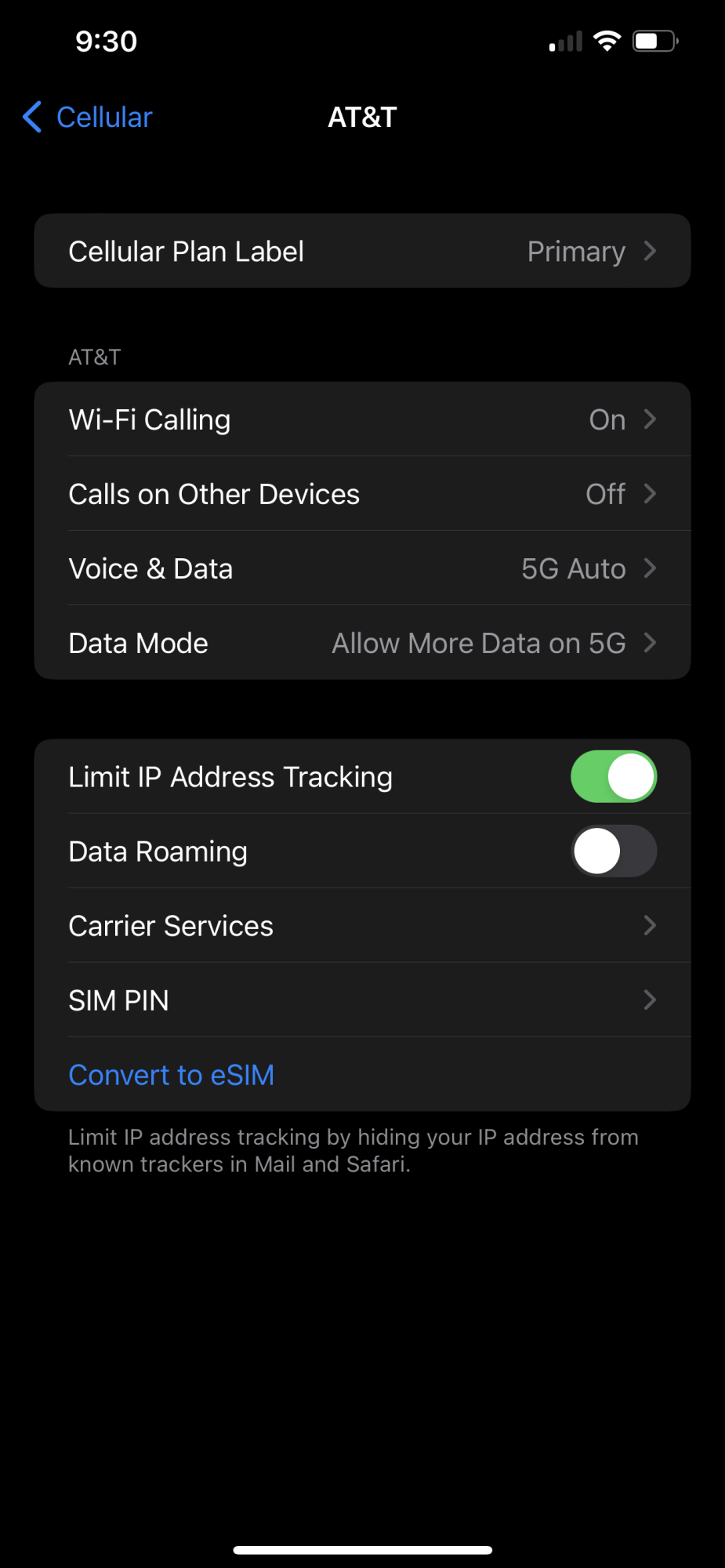 What dose the first screen when you get into the cellular settings looks like?Thank you! I have AT&T and how come I’m not seeing E-sim option?