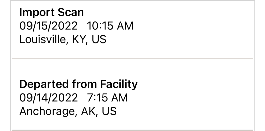 I’m also in Maryland. My last scan was in Anchorage, AK at 7:15 ?EDT, I presume, since when I read that it was 5:40am in Anchorage. I am assuming it will go from there to Louisville, then BWI. Based on prior shipments from Apple, here’s my prediction: it will leave on UPS 67 from Anchorage at 9:35am AKDT, arriving in Louisville at 5:30pm. Then it’ll catch a connection to BWI on UPS 1214, which departs at 4am Friday, arriving in Baltimore at 5:30am. My local UPS center is in Laurel. The delivery truck typically arrives between 2:30-3:30 so I’ll be listening closely for that familiar sound around that time.hmmm. i can’t find any to maryland ):