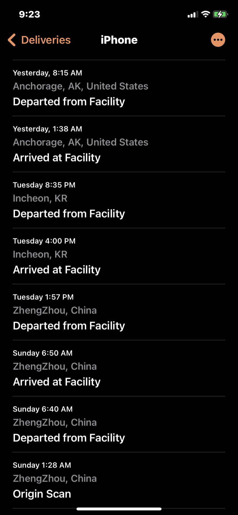 I wonder if it was on a charter flight. Let me compare mineHe is risen! Hmm for some reason your times don't match up exactly (special charter plane??) but roughly match my wave 1!!! Now we wait for your Import Scan. What app is that, btw? Looks dope.
