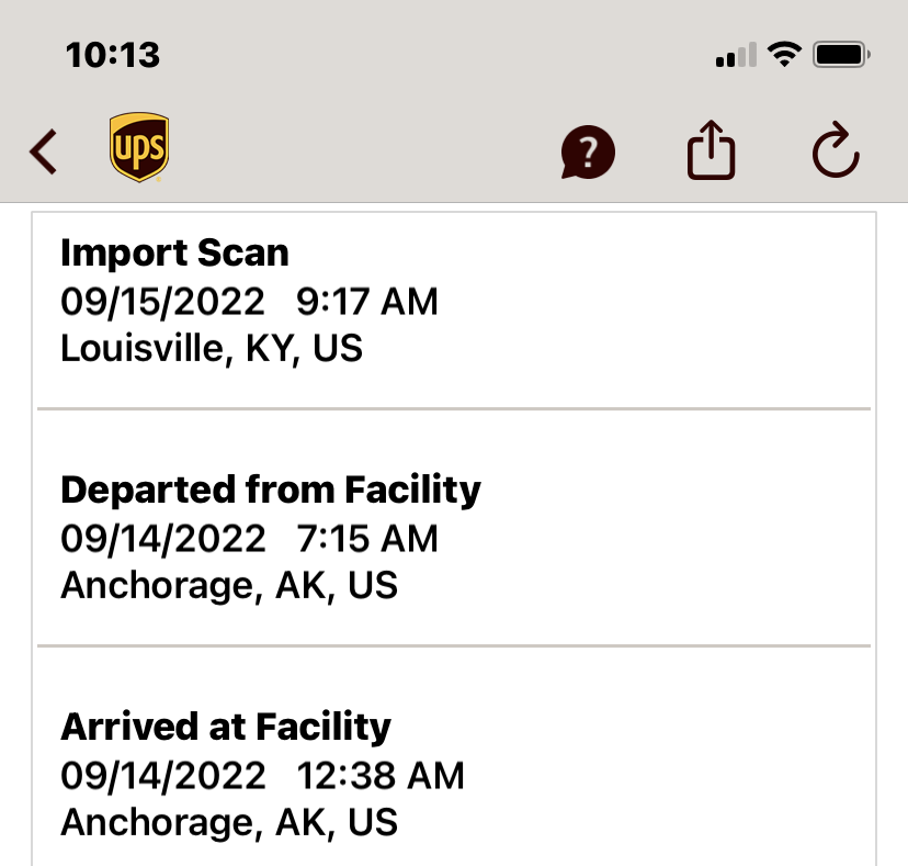 I have absolutely no idea. But now my UPS iOS app won't load.@Shh When are you expected to depart from Kentucky? Can't believe we had to wait a whole week to see your tracking on an official UPS app.