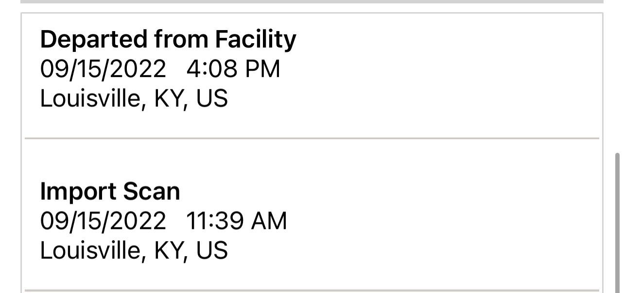 @Rafterman I'm in Rochester and I see that our UPS plane is 5AM almost daily to Buffalo but my phone departed KY at 3:39pm. Not sure where it's headed yet, perhaps JFK or LaGuiardia. Is yours a 3:39 departure as well?Planes to where I live, Buffalo NY, don't leave Louisville until 5AM.