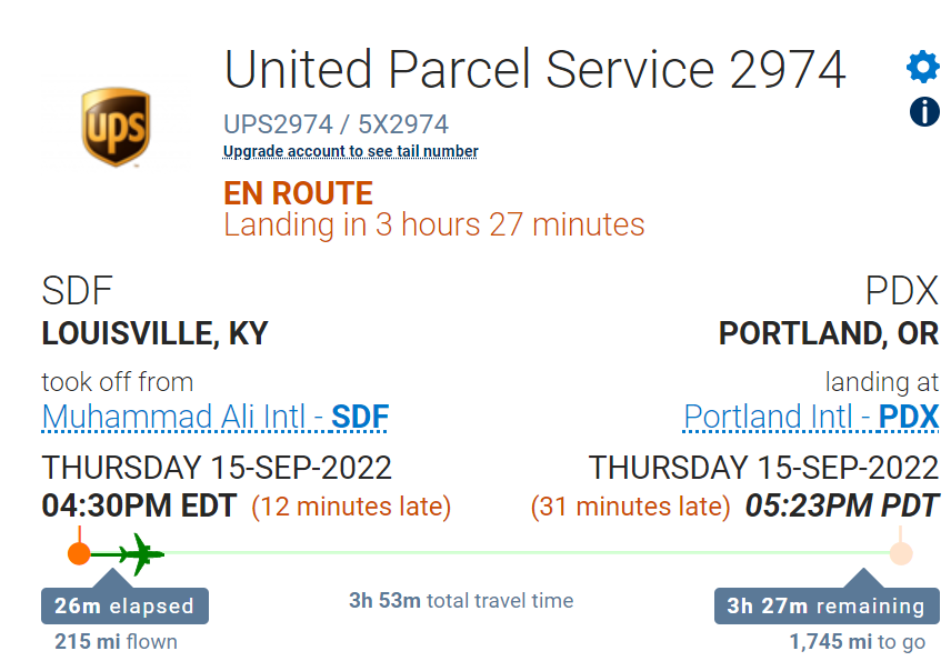 Thanks!UPS2908 departed 3:20pm EDT to ONT - so maybe that's what your on...w/ @Dstopsie . Should land about 4pm PDT (our local).