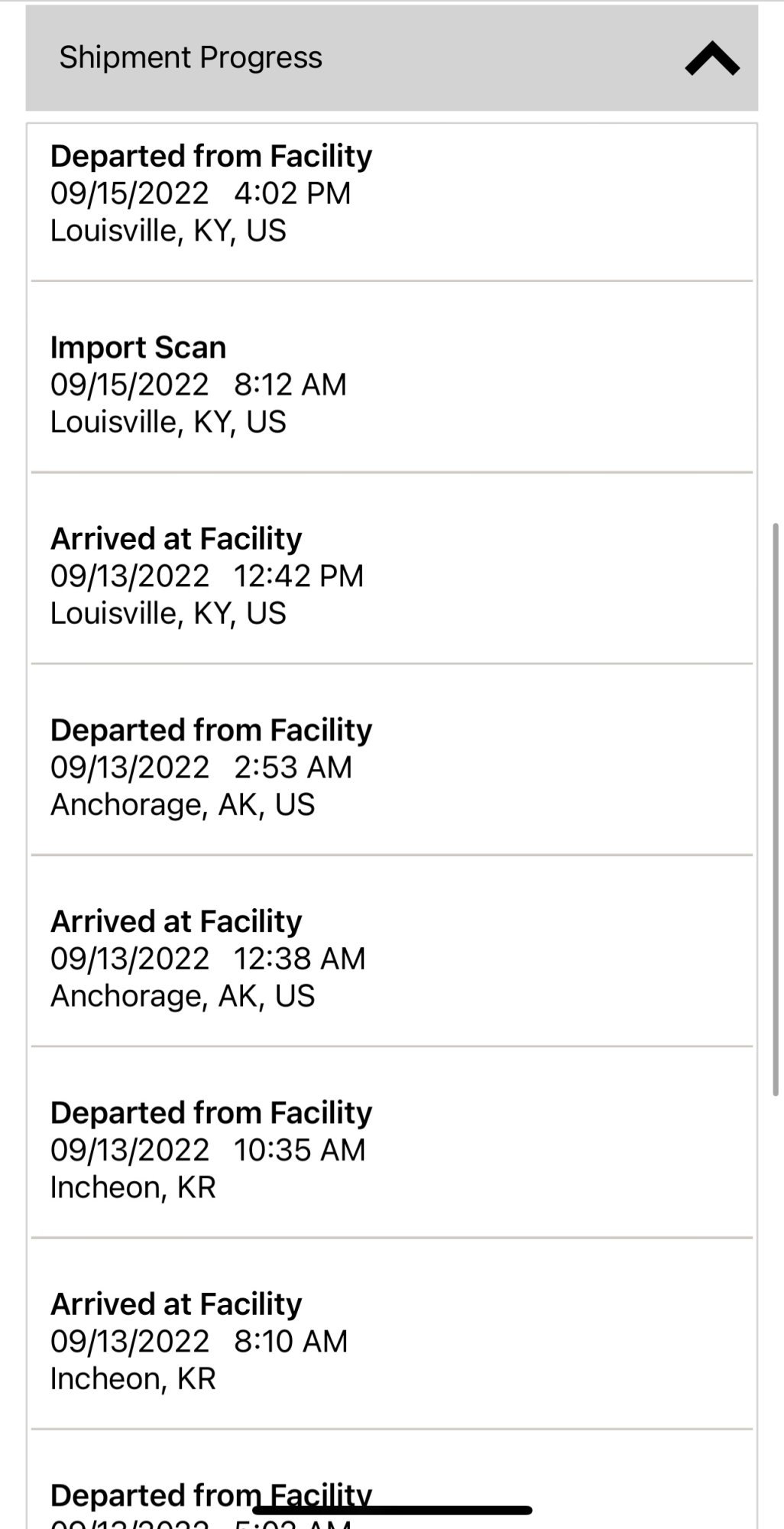 Just called my CC. They put a hold on my address so both my phone and watch band will be held for pick up at 7:30 in the morning. My phone hasn’t departed Ky so couldn’t see the hold yet that I put on.Not yet, but the consensus seems to be that won't happen 'til it's on the ground and the local distribution center. If it's on the flight I assume it's on, I might get something tonight, but who knows?