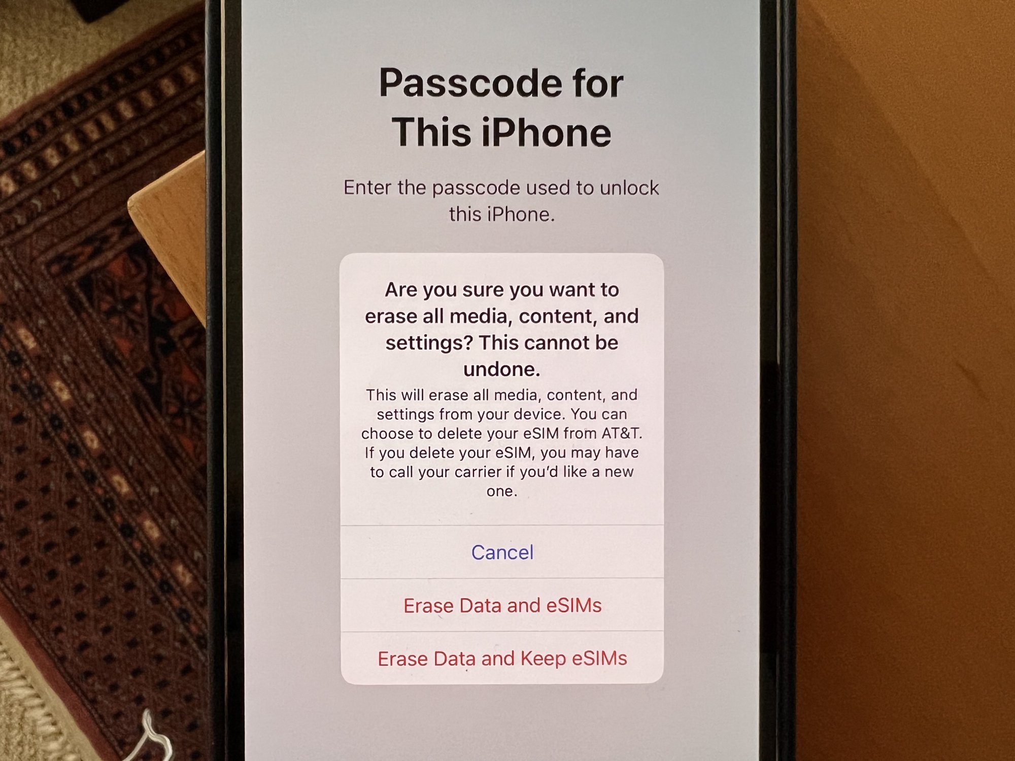 Then I erased the phone - and this is where I always get nervous…so General>Reset>Erase All Contents and Settings. Under eSIM, you will have the option to either erase Data AND eSIM (NO-NO) or Erase Data and KEEP eSIMs (YES).