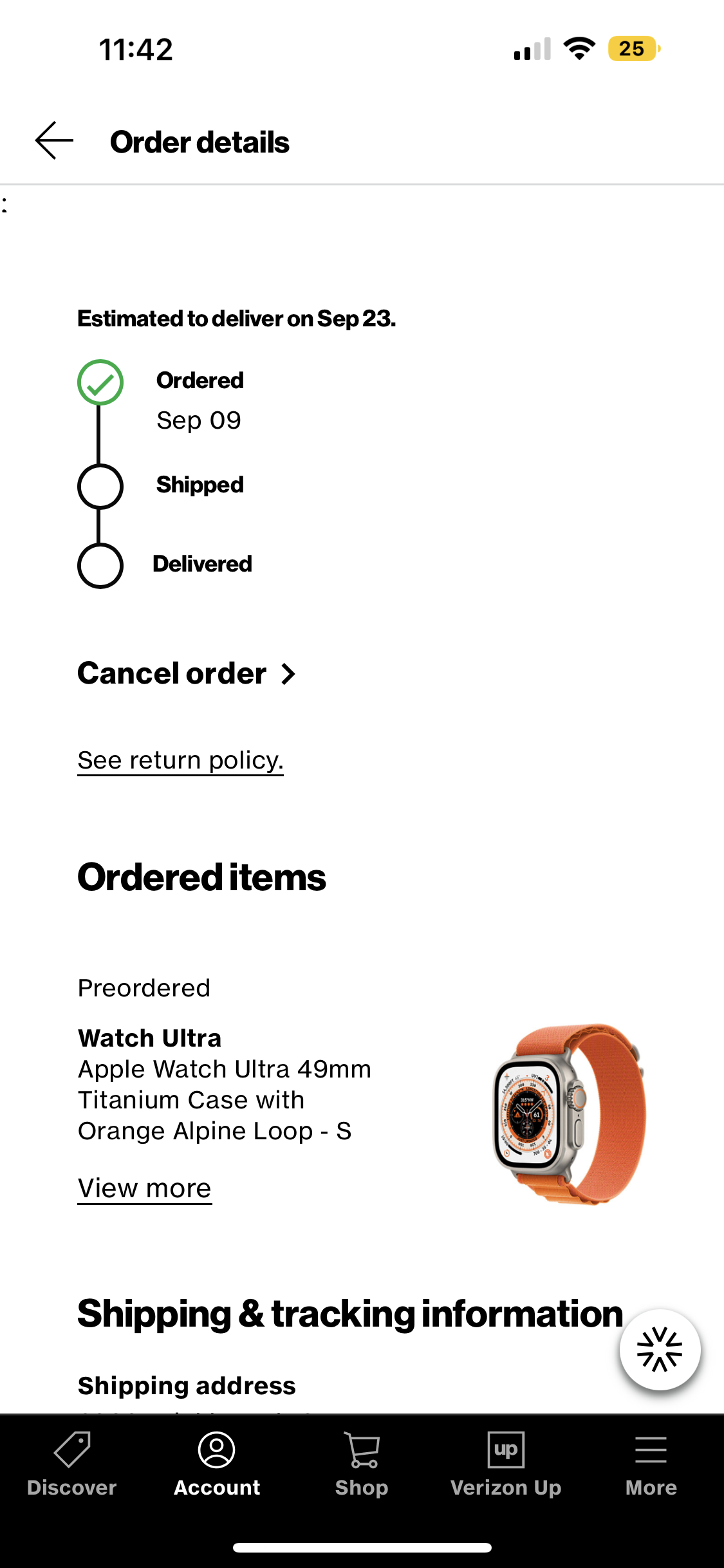 I have two watches, a starlight Alpine Loop S, and a Green Alpine Loop M, same as the rest of you ship by September 23. My Apple Cash got charged on the 9th but then I got it back a few days ago. Verizon told me I would get charged once shipped. I also ordered the AirPods Pro 2 from Verizon and that one says estimated to deliver on the 23rd unlike the watches that say ship by sept 23. Mine also says backordered while the AirPods said preordered. Weird.