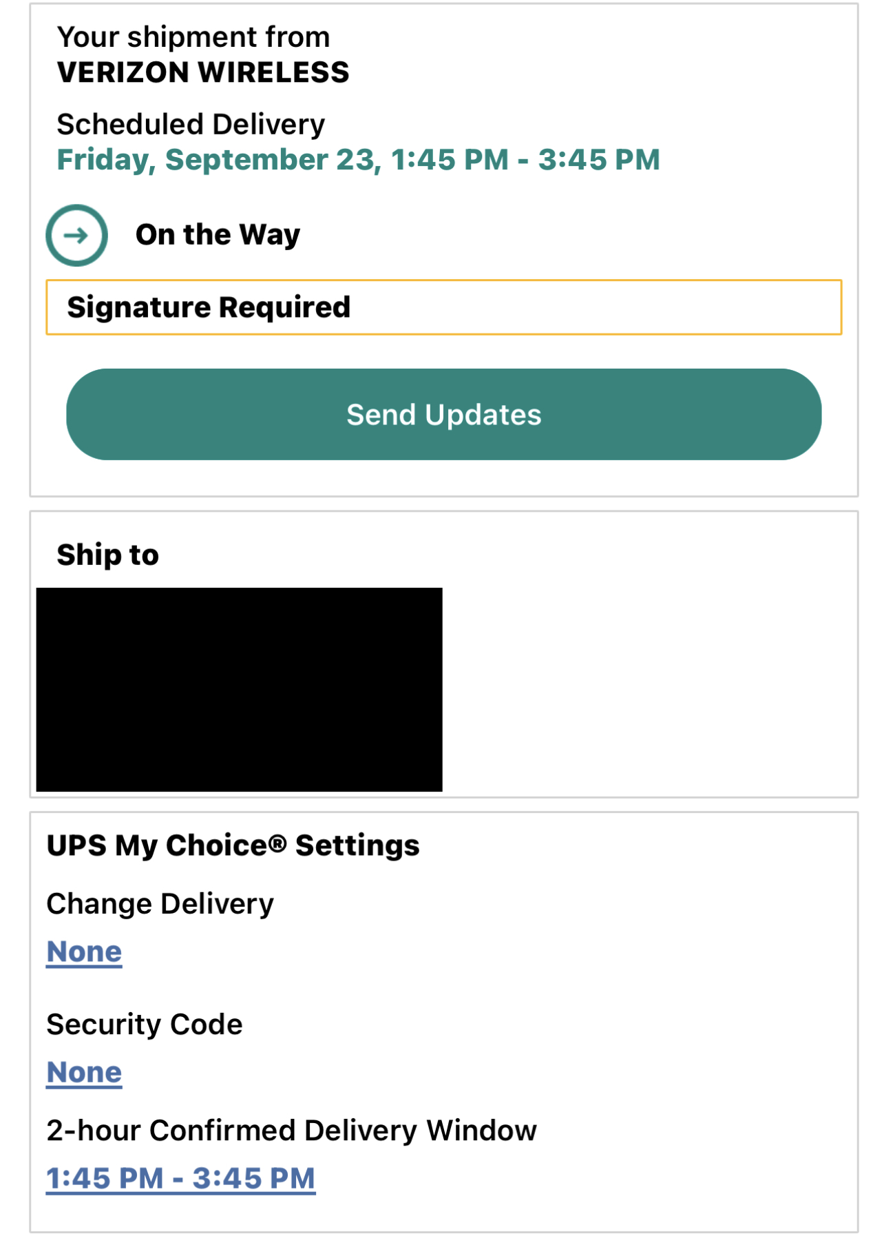 Never got a tracking # in UPS for my wife’s phone. Until it was delivered and set up on the account, it still had showed it as “delivery date will be updated soon”.