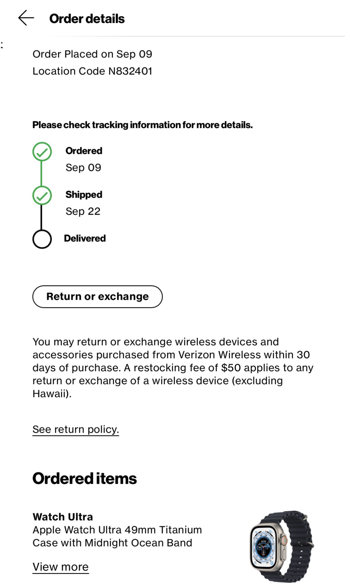 One screenshot below shows that my AWU shipped on Sept 16th, but when you click the link it shows that it shipped 9/22(today).