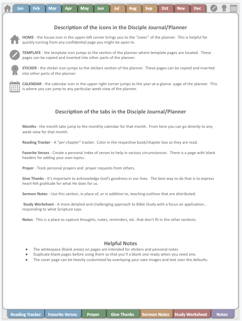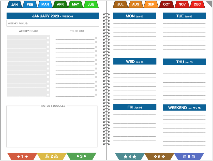 I've included month-specific blank pages for additional notes that don't fit on the weekly details page.