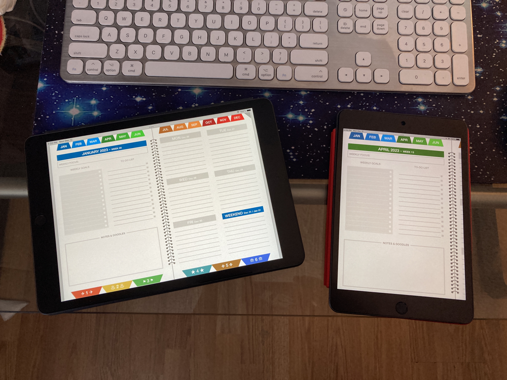 Here's the planner in action on my 9th gen iPad (landscape) and iPad Mini 5 (portrait).