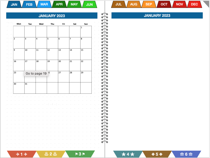Here is where you can record highlights/outlooks for the month. At the beginning of the month, you can copy and paste one of the custom pages and templates included in the notebook as needed. (see instructions for copying and pasting pages within GoodNotes)