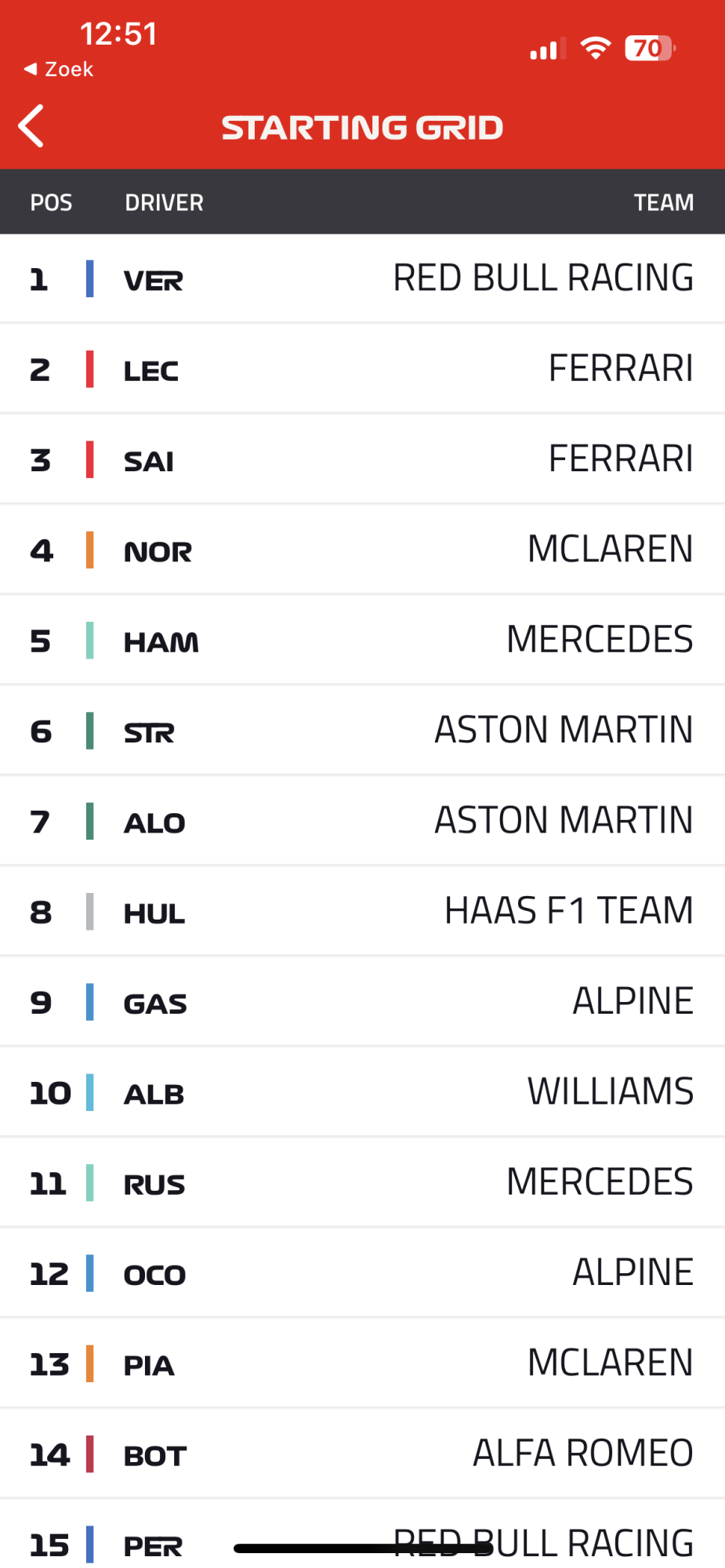 No that was for the sprint race. The qualify for the actual race was last Friday and is as follows.So is this the starting grid?