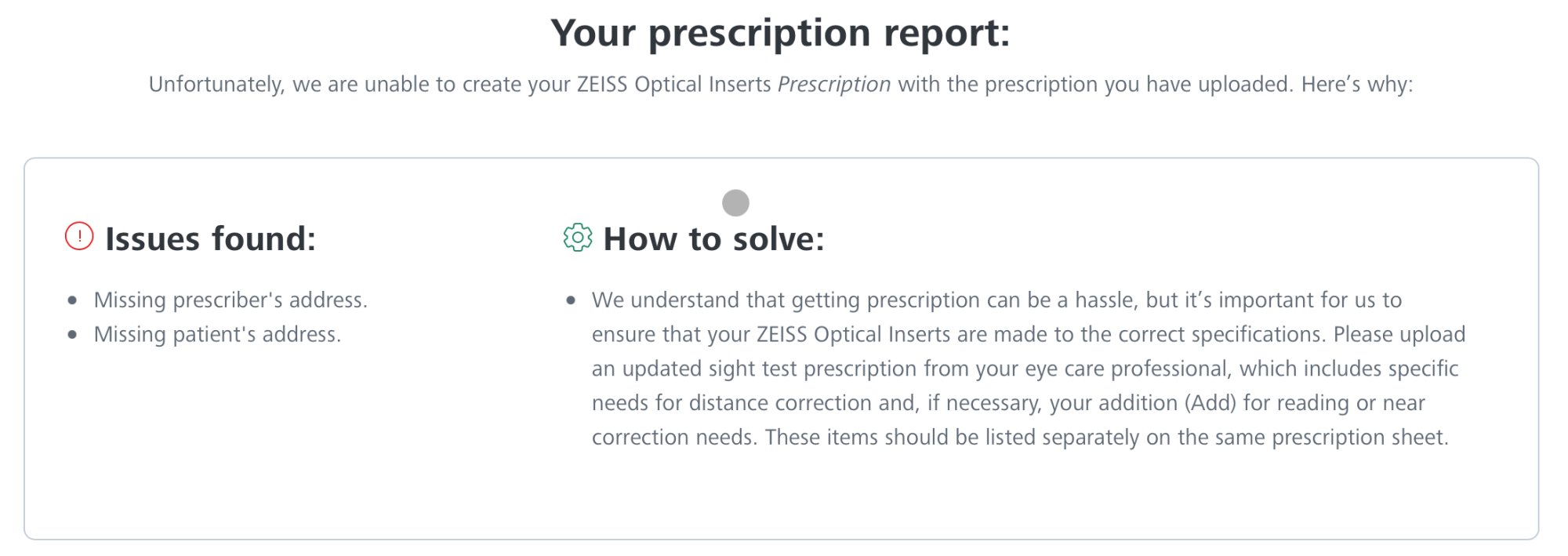 I don’t understand why Zeiss lenses are required….?I ordered mine today and sent my John Lewis Opticians prescription (it’s like a pamphlet) but Zeiss rejected it: