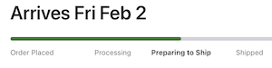 Does it say "Shipment Delayed" on the orders page for anyone else, while at the same time also saying "Arrives Feb 2" when you click on the order? Very confusing