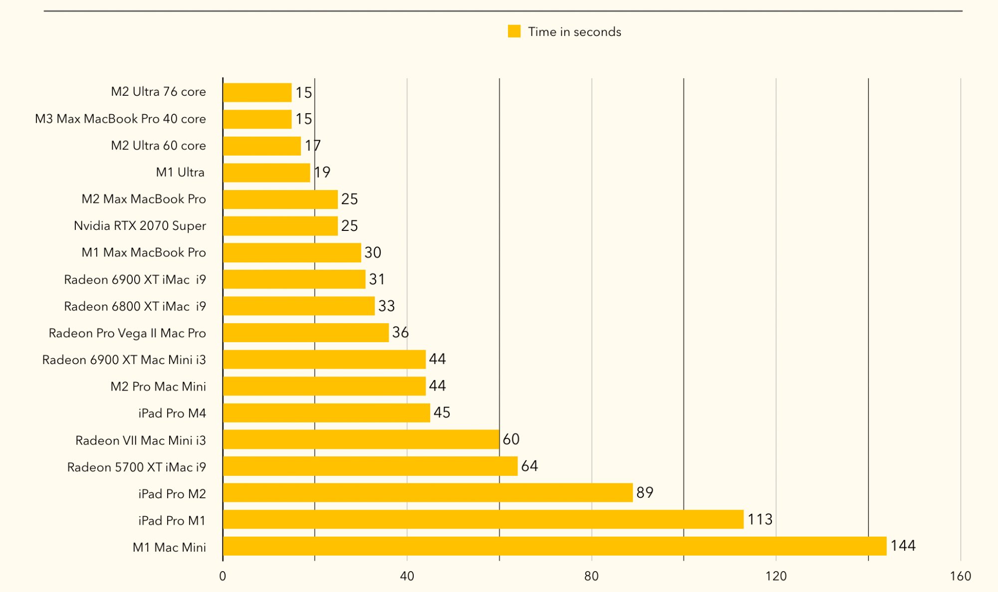 But like you said, the Blender Benchmark sums for all the scenes, and the score database on their site doesn't list the individual scene scores. The fact that Apple isn't sharing the full result so that one can easily compare to the PC scores in the result browser speaks volumes, I would assume.