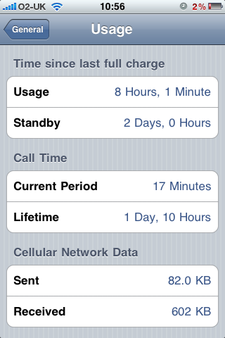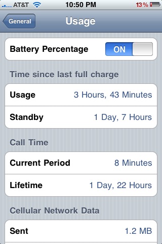 I turned off 3G as well as push/fetch, made one 6min call, did not use data, and just played around with a few apps sporadically. The battery life went quickly down to 2% after less than 2.5 hours of light use w/ about 10 hours of standby time in airplane mode.