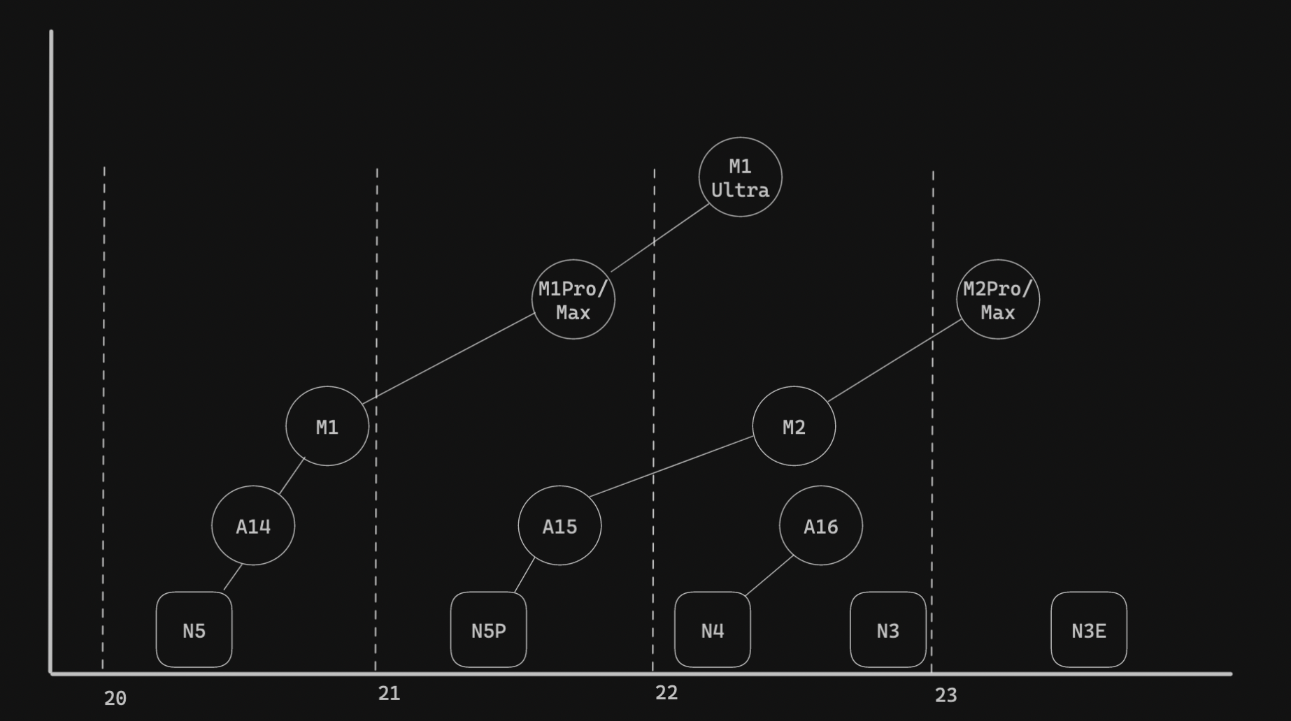N3 wafers cost more money. So the notion of 'completely fork' the m-series off from A-series is actually likely harder because margins are going to get squeeze more. Apple isn't going to the 'poor house' , but probably not likely to arbitrary take the attitude of "throw money at all with zero concern about profit" on how much 'shared across product lines" the SoCs leverage.