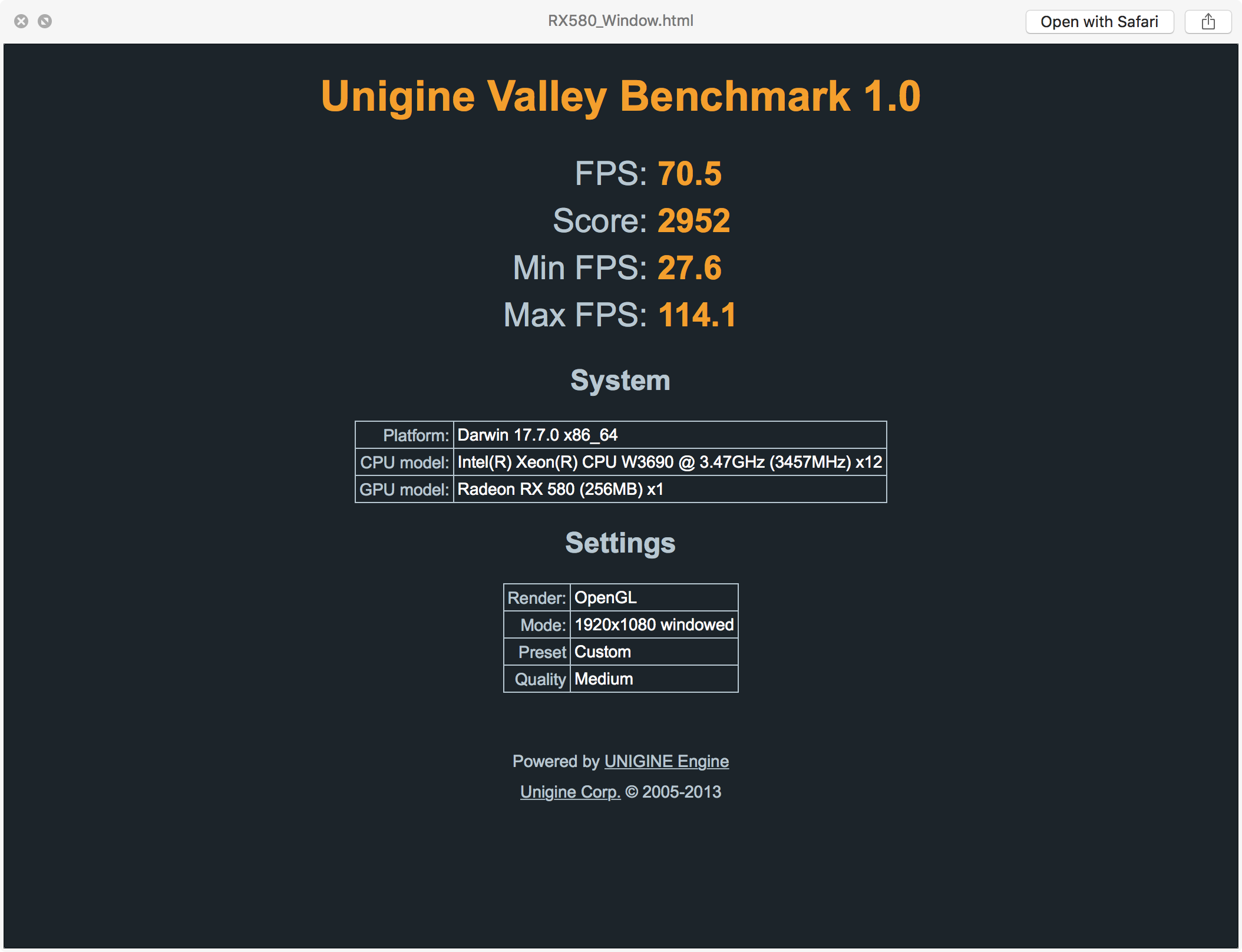 Unigine set default medium settings for OpenGL on Mac, because achieving playable framerates is hard for higher settings, for any Mac.