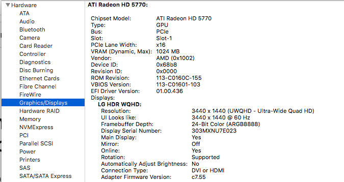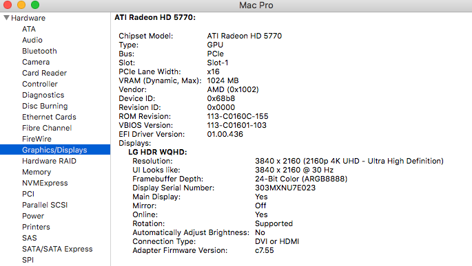 Hey gang, I recently acquired a 2012 5,1 that came with no drives and RAM. Got it home and tried to get it booted using the HD5770 connected to my LG 35" Ultrawide via the mini DP on the card to the DP on the display. No output whatsoever. Basically no signal detected by the display as it immediately wants to sleep. Tried a 34" Gigabyte ultra wide via DP and got the same results. Bought a GT120 off of eBay and it reacts the same way. Tried a DVI to DP cable and no joy. I borrowed an old Dell DVI capable display and that works just fine.